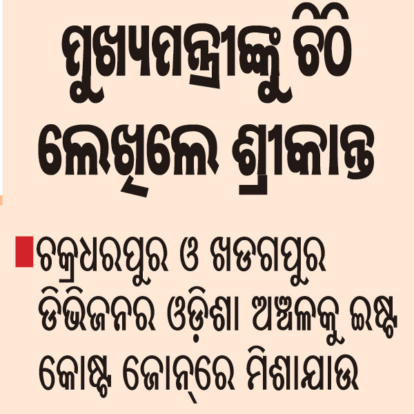 ଭୁବନେଶ୍ୱର, ୧୨ା୮(ବ୍ୟୁରୋ): ୨୦୧୯ରେ ରେଳ ମନ୍ତ୍ରଣାଳୟ ପୂର୍ବତଟ ରେଳପଥ ଜୋନ୍ରୁ ଓ୍ବାଲ୍ଟିୟର ଡିଭିଜନ ଅଲଗା କରିନେଇ ଆନ୍ଧ୍ରପ୍ରଦେଶ ପାଇଁ ଏକ ସ୍ବତନ୍ତ୍ର ରେଳ ଜୋନ୍ ପ୍ରତିଷ୍ଠାର ଘୋଷଣା କରିଛି। ଏହି ନିଷ୍ପତ୍ତି ଯୋଗୁ ଇଷ୍ଟକୋଷ୍ଟ ଜୋନ୍ର ବଡ଼ କ୍ଷତି ହେବାକୁ ଯାଉଛି। ଏହାଦ୍ୱାରା ଇଷ୍ଟ କୋଷ୍ଟ ବାର୍ଷିକ ୫ରୁ ୧୦ ହଜାର କୋଟି ଟଙ୍କା ହରାଇବ ବୋଲି ପୂର୍ବତନ କେନ୍ଦ୍ରମନ୍ତ୍ରୀ ଶ୍ରୀକାନ୍ତ ଜେନା ଅଭିଯୋଗ ଆଣିିଛନ୍ତି। ଏନେଇ ବୁଧବାର ଶ୍ରୀକାନ୍ତ ବୁଧବାର ମୁଖ୍ୟମନ୍ତ୍ରୀ ନବୀନ ପଟ୍ଟନାୟକଙ୍କୁ ଚିଠି ଲେଖିଛନ୍ତି।