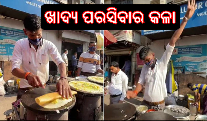 ଦକ୍ଷିଣ ମୁମ୍ବାଇର ମଙ୍ଗଳଦାସ ମାର୍କେଟରେ ଜଣେ ଦୋକାନୀ ଦୋସା ପ୍ରସ୍ତୁତ କରି ପବନରେ ଏମିତି ଉଡ଼ାଇ ଦେଉଛନ୍ତି ଯେ, ସିଧା ଯାଇ ଗ୍ରାହକଙ୍କ ଥାଳିରେ ପଡୁଛି। ଏହାର ଭିଡିଓ ଏବେ ସୋସିଆଲ ମିଡିଆରେ ଭାଇରାଲ ହେଉଛି। ଭିଡିଓକୁ ବର୍ତ୍ତମାନ ସୁଦ୍ଧା ୮୪ କୋଟି ଲୋକ ଦେଖିସାରିଲେଣି।