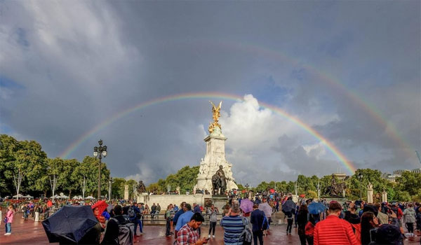 ଲଣ୍ଡନ,୯।୯: ବ୍ରିଟେନର ମହାରାଣୀ ଏଲିଜାବେଥ ଦ୍ୱିତୀୟଙ୍କର ୯୬ ବର୍ଷ ବୟସରେ ପରଲୋକ ଘଟିଛି। ରାଣୀଙ୍କୁ ଶେଷ ସମ୍ମାନ ଜଣାଇବା ପାଇଁ ବକିଙ୍ଗହମ ପ୍ୟାଲେସ ବାହାରେ ଶହ ଶହ ଲୋକ ଏକତ୍ରିତ ହୋଇ ଶୋକ କରିଥିଲେ। ସେଠାରେ ଥିବା ଲୋକେ ଆକାଶରେ ଦୁଇଟି ଇନ୍ଦ୍ରଧନୁ ଦେଖିଥିଲେ। ଯାହାକୁ ଦେଖି ଆଶ୍ଚର୍ଯ୍ୟ ମଧ୍ୟ ହୋଇଯାଇଥିଲେ। ଆଉ ଉପସ୍ଥିତ ଥିବା ଲୋକେ ଫଟୋ ଉଠାଇବା ସହ ଭିଡିଓ କରିବାକୁ ଲାଗିଲେ। ଯାହା ବର୍ତ୍ତମାନ ସୋସିଆଲ ମିଡିଆରେ ଭାଇରାଲ ହେବାରେ ଲାଗିଛି। ଏହାକୁ ନେଇ ଖବରଦାତା ଜେନିଫର ଭାଲେଣ୍ଟାଇନ କହିଛନ୍ତି, ଦୁଇଟି ଇନ୍ଦ୍ରଧନୁ ଜୀବନର ଏକ ପରିବର୍ତ୍ତନର ପ୍ରତୀକ ଅଟେ। ପ୍ରାଣ ତ୍ୟାଗ କରିବା ପରେ ଏହା ସ୍ବର୍ଗର ଏକ ଦ୍ୱାର ହୋଇଥାଏ ବୋଲି ସେ କହିଛନ୍ତି।