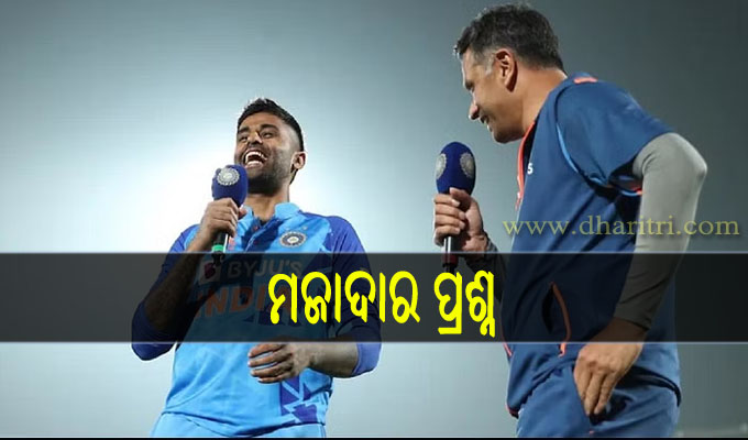 ସାକ୍ଷାତକାର ଆରମ୍ଭରେ ଦ୍ରାବିଡ଼ ସୂର୍ଯ୍ୟକୁମାରଙ୍କୁ ମଜାଦାର ପ୍ରଶ୍ନ ପଚାରିଥିଲେ। ଦ୍ରାବିଡ଼ କହିଛନ୍ତି ଯେଉଁଭଳି ଭାବରେ ସେ ବ୍ୟାଟିଂ କରୁଛନ୍ତି ସେଥିରୁ ବୁଝାପଡୁଛି ସେ ମୋତେ ପିଲାଦିନରେ ବ୍ୟାଟିଂ କରୁଥିବାର ଦେଖି ନାହାଁନ୍ତି। ସୂର୍ଯ୍ୟକୁମାର ହସି ହସି କହିଥିଲେ, ମୁଁ ଦେଖିଛି। ଏହା ପରେ ଦୁହେଁ ହସିବାକୁ ଲାଗିଲେ।