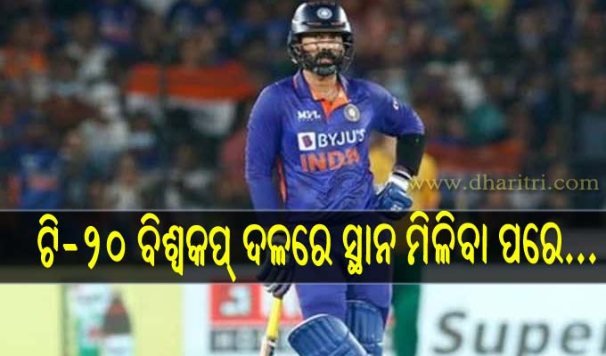 ଟି-୨୦ ବିଶ୍ୱକପ ପାଇଁ ଭାରତୀୟ ଦଳରେ ମନୋନୀତ ହେବା ପରେ ଖୁସି ବ୍ୟକ୍ତ କରିଛନ୍ତି ଦୀନେଶ କାର୍ତ୍ତିକ। ଦୀନେଶ କାର୍ତ୍ତିକଙ୍କ ଟୁଇଟ୍ ଯୋଗେ ଲେଖିଛନ୍ତି, ‘ସ୍ବପ୍ନ ସାକାର ହୁଏ’। ଦୀନେଶ କାର୍ତ୍ତିକ କ୍ରମାଗତ ଭାବରେ ଆଇପିଏଲ ଏବଂ ଘରୋଇ କ୍ରିକେଟରେ ଭଲ ପ୍ରଦର୍ଶନ କରିଆସୁଛନ୍ତି। ଚଳିତ ବର୍ଷର ଆଇପିଏଲରେ ରୟାଲ ଚ୍ୟାଲେଞ୍ଜର୍ସ ବେଙ୍ଗାଲୁରୁ ପାଇଁ ଦୀନେଶ କାର୍ତ୍ତିକ ଚମତ୍କାର ବ୍ୟାଟିଂ କରିଥିଲେ।