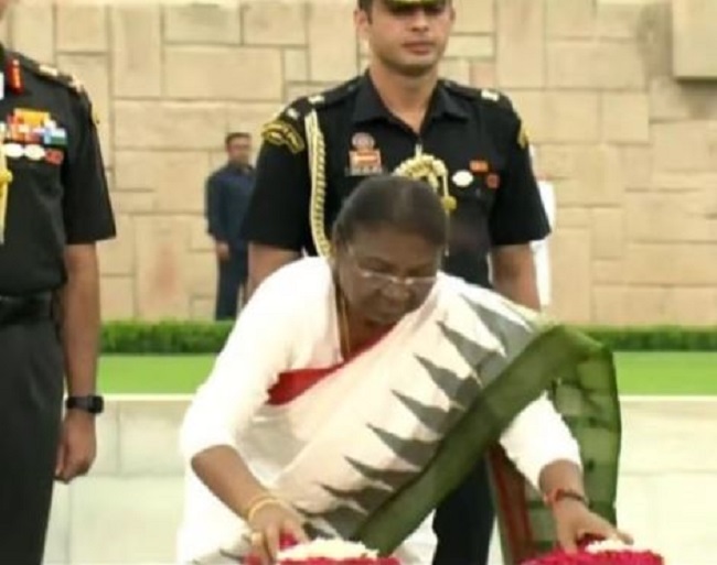 ରାଷ୍ଟ୍ରପତି ଭାବେ ଶପଥ ନେବା ପୂର୍ବରୁ ରାଜଘାଟ ପହଞ୍ଚି ମହାତ୍ମା ଗାନ୍ଧୀଙ୍କୁ ଶ୍ରଦ୍ଧାଞ୍ଜଳୀ ଦେଲେ ଦ୍ରୌପଦୀ
