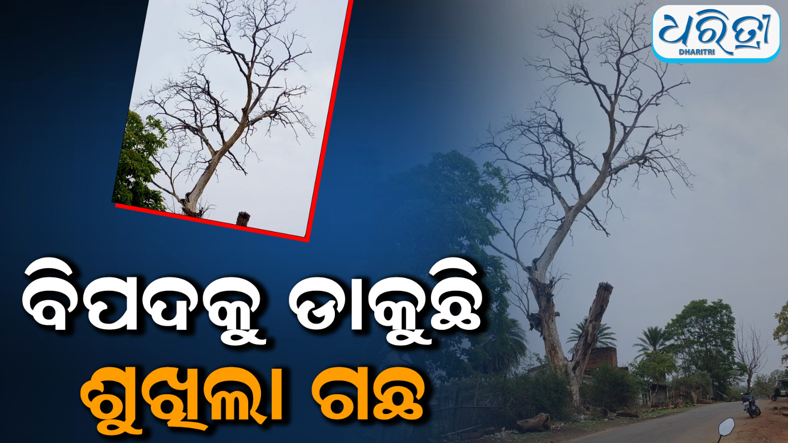 ଦାରିଙ୍ଗବାଡ଼ି,୨୭।୪ (ଅରୁଣ ସାହୁ): କନ୍ଧମାଳ ଜିଲା ଦାରିଙ୍ଗବାଡି ବ୍ଲକ ପ୍ଳିହେରୀ ପଞ୍ଚାୟତ ମ୍ଲୁକଚେରୀ ଗାଁ ଜାତୀୟରାଜପଥ କଡ଼ରେ ରହିଛି ଶୁଖିଲା ବିରାଟ କାୟ ଗଛ। ଯାହାକି ବିପଦ ସଂକୁଳ ଅବସ୍ଥାରେ ରହିଛି। ଶନିବାର କାଳବୈଶାଖୀର ପ୍ରଭାବରେ ଗଛର ଶୁଖିଲା ଡାଳ ସବୁ ଭାଙ୍ଗି ପଡିଥିଲା କୌଣସି ମୁହୂର୍ତ୍ତରେ ଉକ୍ତ ଶୁଖିଲା ଗଛଟି ଭାଙ୍ଗିବା ଆଶଙ୍କା କରି ରାଜପଥ ଦେଇ ଯାତାୟାତ କରିବାକୁ ଲୋକମାନେ ଭୟଭୀତ ହେଉଛନ୍ତି । ଶୀଘ୍ର ଗଛକୁ ବନ ବିଭାଗ କାଟିବା ବ୍ୟବସ୍ଥା କରିବାକୁ ସ୍ଥାନୀୟ ବାସିନ୍ଦା ଦାବି କରିଛନ୍ତି।