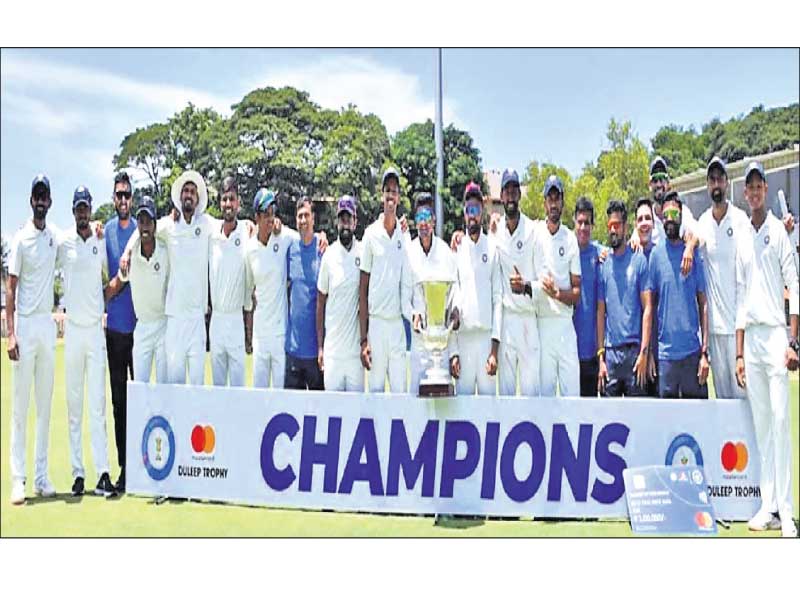 କୋଏମ୍ବାଟୁର,୨୬ା୯(ପି.ଟି.) : ଦକ୍ଷିଣାଞ୍ଚଳକୁ ୨୯୪ ରନ୍ରେ ହରାଇବା ସହିତ ଦୁଲୀପ୍ ଟ୍ରଫି ହାତେଇ ନେଇଛି ପଶ୍ଚିମାଞ୍ଚଳ। ରବିବାର ଅନ୍ତିମ ଦିନରେ ପଶ୍ଚିମାଞ୍ଚଳକୁ ବିଜୟ ପାଇଁ ୪ ଉଇକେଟ ଆବଶ୍ୟକ ଥିଲା। ସ୍ପିନର ସାମ୍ସ ମୁଲାନୀଙ୍କ ୪/୫୧ ବୋଲିଂ ବଳରେ ମ୍ୟାଚ୍କୁ ପ୍ରଥମ ଦୁଇ ସେସନ ମଧ୍ୟରେ ଜିତି ନେଇଥିଲା ପଶ୍ଚିମାଞ୍ଚଳ। ଦକ୍ଷିଣାଞ୍ଚଳ ସମ୍ମୁଖରେ ଅସମ୍ଭବ ୫୨୯ ରନ୍ର ବିଜୟ ଲକ୍ଷ୍ୟ ରହିଥିବା ବେଳେ ଦଳ ୭୧.୨ ଓଭରରେ ୨୩୪ ରନ୍ରେ ସମସ୍ତ ଉଇକେଟ ହରାଇଥିଲା।