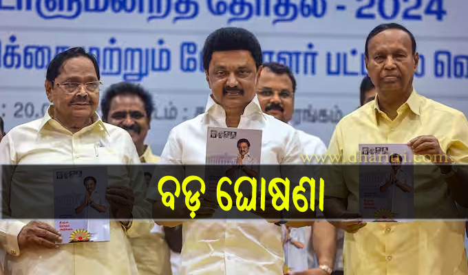 ଚେନ୍ନାଇ,୨୦।୩: ଦ୍ରାବିଡା ମୁନ୍ନେତ୍ରା କାଜଗାମ (ଡିଏମକେ) ଲୋକ ସଭା ନିର୍ବାଚନ ୨୦୨୪ ପାଇଁ ମନିଫେଷ୍ଟୋ ପ୍ରକାଶ କରିଛି। ଲୋକ ସଭା ନିର୍ବାଚନ ପାଇଁ ମନିଫେଷ୍ଟୋ ସହିତ ତାମିଲନାଡୁର ୨୧ଟି ଆସନ ପାଇଁ ପ୍ରାର୍ଥୀଙ୍କ ନାମ ମଧ୍ୟ ଘୋଷଣା କରିଛି। ଡିଏମ୍କେ ମାନିଫେଷ୍ଟୋରେ ଅନେକ ଆଶ୍ଚର୍ଯ୍ୟଜନକ ପ୍ରତିଶ୍ରୁତି ଅଛି।