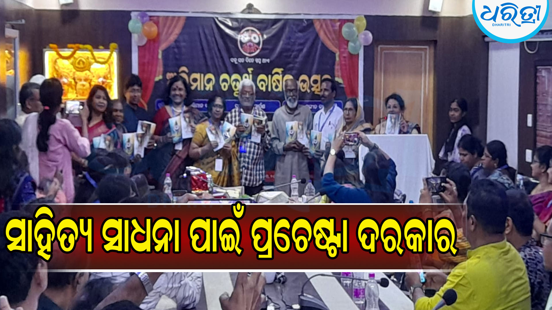 ପୁରୀ,୧୬ା୩: ପୁରୀର ଅଗ୍ରଣୀ ପ୍ରକାଶନୀ ସଂସ୍ଥା ‘ଅଭିମାନ’ର ଚତୁର୍ଥ ବାର୍ଷିକ ଉତ୍ସବ ଜିଏସ୍ଟି ସମ୍ମିଳନୀ କକ୍ଷରେ ଦୋଳପୂର୍ଣିମା ଅବସରରେ ଅନୁଷ୍ଠିତ ହୋଇଯାଇଛି। ଉକ୍ତ କାର୍ଯ୍ୟକ୍ରମରେ ବରେଣ୍ୟ ଅତିଥି ଭାବରେ ସାମାଜିକ କର୍ମୀ ତଥା କବି ଶୈଳଜ ରବି, କଥାକାର ହିରଣ୍ମୟୀ ମିଶ୍ର, କବୟିତ୍ରୀ ସୁଚେତା ମିଶ୍ର, କବି ତଥା ଔପନାସିକ ଭବାନୀ ଶଙ୍କର ପାଟ୍ଟଯୋଷୀ ଯୋଗ ଦେଇ ସାହିତ୍ୟ ସାଧନା ପାଇଁ ପ୍ରଚେଷ୍ଟା ଦରକାର ବୋଲି ମନ୍ତବ୍ୟ ପ୍ରଦାନ କରି ଉପସ୍ଥିତ ଦର୍ଶକ ମଣ୍ଡଳୀଙ୍କୁ ମୁଗ୍ଧ କରିଥିଲେ। ଏହି ପରିପ୍ରେକ୍ଷୀରେ କାନନବାଳା ନାୟକଙ୍କ ଗଳ୍ପ ସଂକଳନ ‘ଈଶ୍ବରଙ୍କ ହସ’, ବିନୋଦିନୀ ଗନ୍ତାୟତଙ୍କ ‘ବୋଉ’ ଏବଂ ଅନ୍ୟାନ୍ୟ ଗଳ୍ପ, ସୁରେନ୍ଦ୍ର କୁମାର ଦାଶଙ୍କ ‘ମଣି କାଞ୍ଚନ’, ସନ୍ତୋଷିନୀ ଦାଶ ଗିରିଙ୍କ ‘ଭକ୍ତି ଅର୍ଘ୍ୟ’, ଭବାନୀ ଶଙ୍କର ପାଟ୍ଟଯୋଷୀଙ୍କ କବିତା ସଂକଳନ ‘ଉଦାର ଅନ୍ଧାର’ ସ୍ବର୍ଗତ ଗୋଲକ ବିହାରୀ ରଥଙ୍କ ଭକ୍ତି କବିତା ସଂକଳନ ‘ସମର୍ପଣ’ ଏବଂ ବୃନ୍ଦାବନ ଦାଶଙ୍କ କବିତା ସଂକଳନ ‘ଗୀତିବୀଥି’ ଲୋକାର୍ପିତ ହୋଇଯାଇଛି । ନିଜର ସୁନ୍ଦର ଅଭିଭାଷଣରେ ବିଖ୍ୟାତ ସଂଯୋଜକ ଶ୍ୟାମ ପ୍ରକାଶ ସେନାପତି ସଭାକାର୍ଯ୍ୟ ଶୁଭାରମ୍ଭ କରିଥିଲାବେଳେ ନିବେଦିତା ନନ୍ଦ ପ୍ରାରମ୍ଭିକ ଭକ୍ତି ସଙ୍ଗୀତ ଗାନ ଏବଂ ଶ୍ୱେତପଦ୍ମା ପାଢ଼ୀ କାର୍ଯ୍ୟକ୍ରମକୁ ସଂଯୋଜନା କରିଥିଲେ।