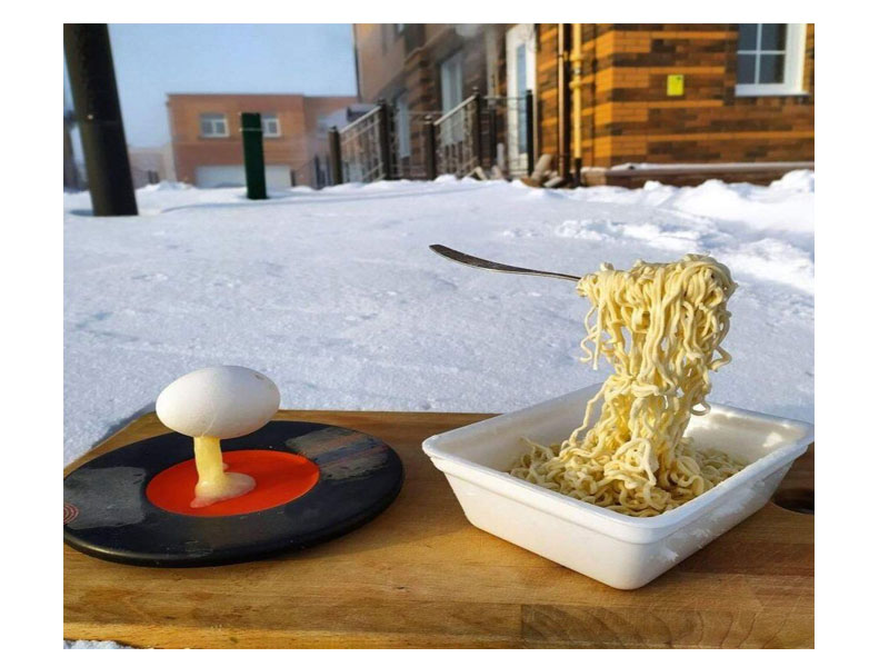 ନୋଭୋସିବିରସ୍କି,୨୯।୧୨: ପ୍ରବଳ ଥଣ୍ଡାରେ ଅଣ୍ଡା ଏବଂ ନୁଡୁଲ୍ସ୍ କିଭଳି ତଳେ ନ ପଡ଼ି ଜମାଟ ବାନ୍ଧି ଯାଇଛି, ତାହାର ଏକ ଫଟୋ ଏବେ ସୋସିଆଲ୍ ମିଡ଼ିଆରେ ଭାଇରାଲ ହେବାରେ ଲାଗିଛି। ଏହି ଫଟୋ ସାଇବେରିଆର ନୋଭୋସିବିରସ୍କିରେ ଉଠାଯାଇଥିବା କୁହାଯାଉଛି। ସୋମବାର ଏଠାରେ ତାପମାତ୍ରା ମାଇନସ୍ ୪୫ ଡିଗ୍ରୀ ସେଲସିୟସ୍ ଥିଲା। ନୁଡୁଲ୍ସ୍କୁ ପାଟିକୁ ନେବା ପୂର୍ବରୁ ଏହା ପବନରେ କଣ୍ଟା ଚାମୁଚରେ ଜମାଟ ହୋଇଯାଇଥିଲା। ସେହିପରି ଅଣ୍ଡା ଫଟାଇବା ପରେ ଏହା ମଧ୍ୟ ପବନରେ ଜମାଟ ବାନ୍ଧି ଯାଇଥିଲା। ଏହି ଫଟୋକୁ ଓଲେଗ୍ ନାମକ ଜଣେ ୟୁଜରଙ୍କ ଟୁଇଟର ହ୍ୟାଣ୍ଡେଲରେ ଅପଲୋଡ଼ କରାଯାଇଛି। ଫଟୋକୁ ନେଇ ବିଭିନ୍ନ ୟୁଜର ଭିନ୍ନ ଭିନ୍ନ ମତାମତ ଦେଇଛନ୍ତି।