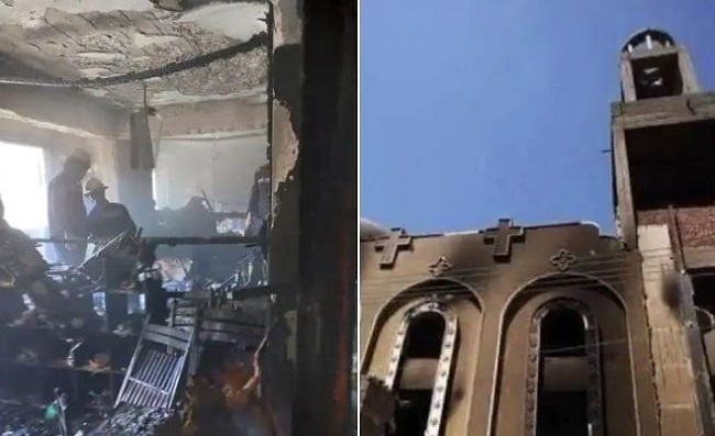 ଇମ୍ବାବାର ଧନୀ ଅଞ୍ଚଳରେ ଅବୁ ସେଫିନ ଚର୍ଚ୍ଚରେ ଏହି ନିଆଁ ଲାଗିଛି । ନିଆଁ ଲାଗିବାର କାରଣ ସ୍ପଷ୍ଟ ହୋଇନାହିଁ । ତେବେ ପ୍ରାଥମିକ ତଦନ୍ତରୁ ବିଜୁଳି ଶର୍ଟ ସର୍କିଟ ଯୋଗୁ ନିଆଁ ଲାଗିଥିବା ଅନୁମାନ କରାଯାଉଛି । ରବିବାର ସକାଳେ ଯେତେବେଳେ ସଭା ଚାଲିଥିଲା ସେହି ସମୟରେ ନିଆଁ ଲାଗି ଯାଇଥିଲା । ନିଆଁକୁ ଆୟତ୍ତ କରିବାକୁ ୧୫ ଦମକଳ ଗାଡି ପହଞ୍ଚିବା ସହ ଆମ୍ବୁଲାନ୍ସ ଯୋଗେ ଆହତଙ୍କୁ ହସ୍ପିଟାଲ ନିଆଯାଇଥିଲା । କିଛି ଘଣ୍ଟା ପରେ ନିଆଁକୁ ଆୟତ୍ତ କରାଯାଇଥିବା ପ୍ରକାଶ କରାଗଲା । ଏହି ଘଟଣା ପରେ ରାଷ୍ଟ୍ରପତି ଚର୍ଚ୍ଚର ପୋପଙ୍କ ସହ କଥା ହୋଇ ସମବେଦନା ଜଣାଇଛନ୍ତି ।