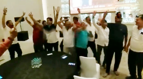 ପଣଜୀ,୩୦।୬: ମହାରାଷ୍ଟ୍ରର ମୁଖ୍ୟମନ୍ତ୍ରୀ ଭାବେ ଶିବସେନା ନେତା ଏକନାଥ ସିନ୍ଧେଙ୍କ ନାମ ଘୋଷଣା ହେବା ପରେ ଗୋଆ ହୋଟେଲରେ ରହିଥିବା ସିନ୍ଧେ ଗୋଷ୍ଠୀର ବିଧାୟକମାନେ ଖୁସି ବ୍ୟକ୍ତ କରିବା ସହିତ ଉତ୍ସବ ପାଳନ କରିଛନ୍ତି। ବିଧାୟକଙ୍କ ଏକ ଭିଡିଓ ଏବେ ସାମ୍ନାକୁ ଆସିଥିବା ବେଳେ ସୋସିଆଲ ମିଡିଆରେ ଏହା ଭାଇରାଲ ହେବାରେ ଲାଗିଛି। ଏହି ଭିଡିଓରେ ବିଧାୟକମାନେ ନାଚୁଥିବାର ଦେଖିବାକୁ ମିଳିଛି। ସୂଚନାଯୋଗ୍ୟ, ବୁଧବାର ଉଦ୍ଧବ ଠାକରେ ଇସ୍ତଫା ଦେଇଥିଲେ। ଇସ୍ତଫା ଦେବାର ଗୋଟିଏ ଦିନ ପରେ ଶିବସେନା ବିଧାୟକ ଏକନାଥ ସିନ୍ଧେ ମହରାଷ୍ଟ୍ରରେ ସରକାର ଗଠନ କରିଛନ୍ତି। ଏକନାଥ ମୁଖ୍ୟମନ୍ତ୍ରୀ ଭାବେ ଶପଥ ନେଇଥିବା ବେଳେ ଭାଜପା ନେତା ଦେବେନ୍ଦ୍ର ଫଡନବିିସ୍ ଉପମୁଖ୍ୟମନ୍ତ୍ରୀ ଭାବେ ଶପଥ ଗ୍ରହଣ କରିଛନ୍ତି।