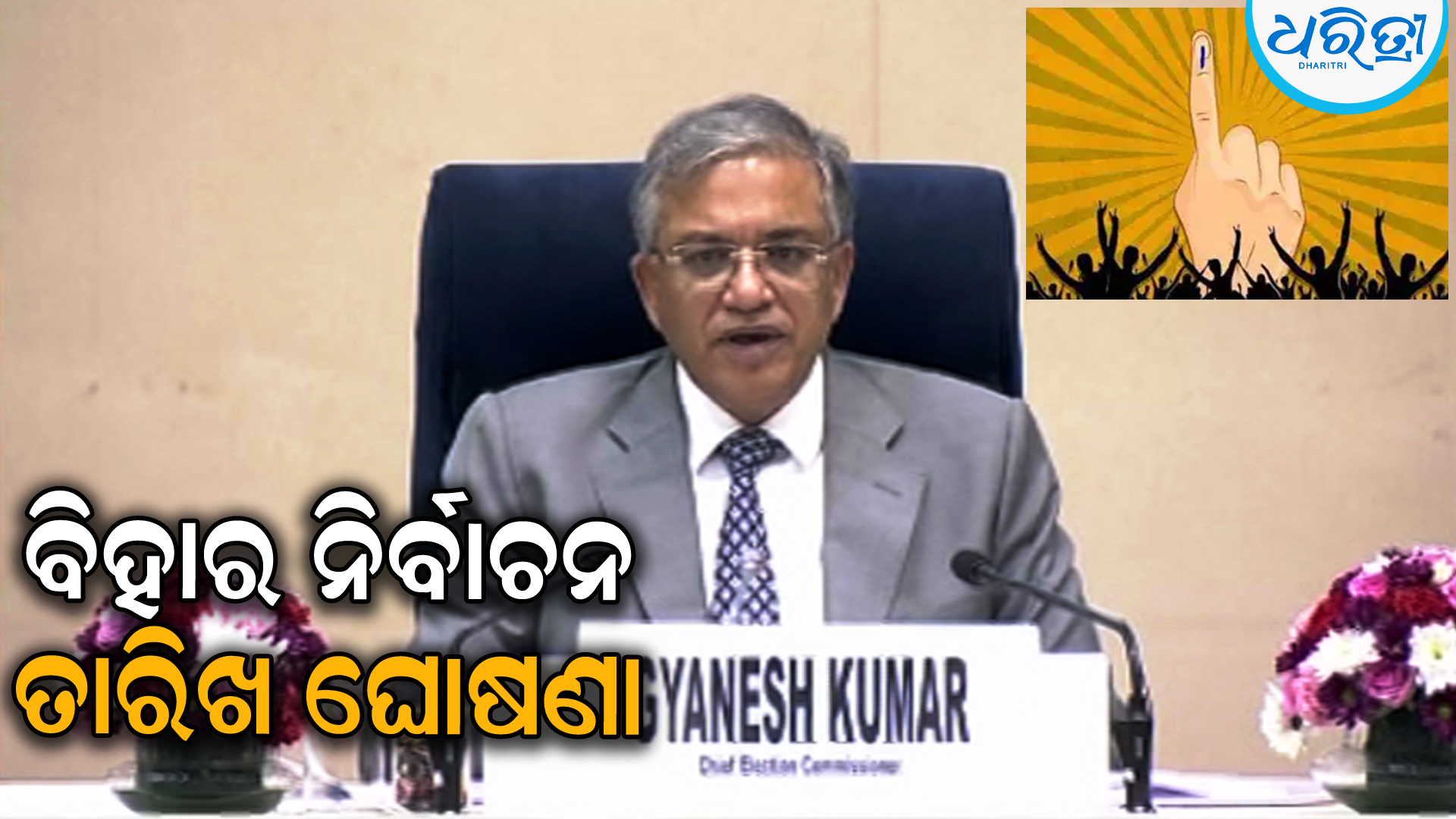 ପାଟ୍ନା,୬ା୧୦: ବିହାର ବିଧାନସଭା ନିର୍ବାଚନ ପାଇଁ ସୋମବାର ତାରିଖ ଘୋଷଣା କରିଛନ୍ତି ମୁଖ୍ୟ ନିର୍ବାଚନ କମିଶନର। ଏହି ନିର୍ବାଚନ ନଭେମ୍ବର ୬ରେ ଅନୁଷ୍ଠିତ ହେବ। ତେବେ ଉକ୍ତ ନିର୍ବାଚନ ଦୁଇଟି ପର୍ଯ୍ୟାୟରେ ଅନୁଷ୍ଠିତ ହେବ। ନଭେମ୍ବର ୧୧ରେ ଦ୍ୱିତୀୟ ପର୍ଯ୍ୟାୟ ମତଦାନ ହେବାକୁ ଥିବାବେଳେ ୧୪ରେ ଭୋଟ୍ ଗଣତି ହେବ ବୋଲି ନିର୍ବାଚନ କମିଶନର ଘୋଷଣା କରିଛନ୍ତି।