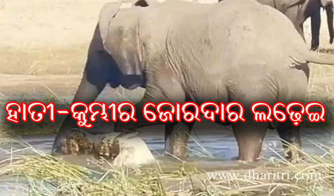 ଆଫ୍ରିକାର ଜାମ୍ବିଆରେ ଏକ ମାଈ ହାତୀ ଏବଂ କୁମ୍ଭୀର ମଧ୍ୟରେ ଲଢ଼େଇ ହେଉଥିବାର ଭିଡିଓ ଏବେ ସୋସିଆଲ ମିଡିଆରେ ଭାଇରାଲ ହେଉଛି। ଭିଡିଓରେ ଦେଖିବାକୁ ମିଳିଛି, ହାତୀଟି କୁମ୍ଭୀରକୁ ପାଣି ଭିତରେ ଶୁଣ୍ଢରେ ମାରୁଛି। ମଝିରେ ମଝିରେ ତା’ ଉପରେ ପାଦ ଦେଇ ଚଢ଼ିଯାଉଥିବା ଦେଖିବାକୁ ମିଳିଛି। ଏହି ଦୁଇ ପ୍ରାଣୀଙ୍କ ମଧ୍ୟରେ ଲଢ଼େଇର ଭିଡିଓକୁ ଜଣେ ପର୍ଯ୍ୟଟକ ଶୁଟିଂ କରି ସୋସିଆଲ ମିଡିଆରେ ଶେୟାର କରିଦେଇଛନ୍ତି। ଭିଡିଓରେ ଦେଖନ୍ତୁ ଶେଷକୁ କ’ଣ ଘଟିଛି…