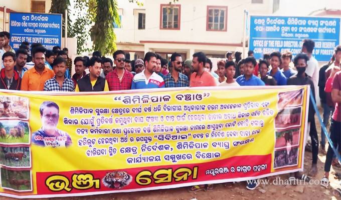 ବାରିପଦା ଅଫିସ,୨୯ା୧୨: ମୟୂରଭଞ୍ଜ ଜିଲାର ଶୋଭା ବର୍ଦ୍ଧନ କରୁଥିବା ଜାତୀୟ ଅଭୟାରଣ୍ୟ ‘ଶିମିଳିପାଳ ବଞ୍ଚାଅ’ ଅଭିଯାନକୁ ନେଇ ଅଗ୍ରଣୀ ଅଣ ରାଜନୈତିକ ସଙ୍ଗଠନ ଭଞ୍ଜସେନା ପକ୍ଷରୁ ଗୁରୁବାର ଶିମିଳିପାଳ ବ୍ୟାଘ୍ର ସଂରକ୍ଷଣ ପ୍ରକଳ୍ପ କ୍ଷେତ୍ର ନିର୍ଦ୍ଦେଶକଙ୍କ କାର୍ଯ୍ୟାଳୟ ସମ୍ମୁଖରେ ବିକ୍ଷୋଭ ପ୍ରଦର୍ଶନ କରାଯାଇଛି। ଅଭୟାରଣ୍ୟରେ ହାତୀଶିକାର ଓ ପ୍ରମାଣ ନଷ୍ଟ ଘଟଣାରେ ସବିଆଇ ତଦନ୍ତ ଦାବି କରିଛି ସଂଗଠନ। ହାତୀ ଶିକାର କରିଥିବା ଅଧିକାରୀଙ୍କଠାରୁ ମୂଲ୍ୟବାନ ଦାନ୍ତ ଦ୍ବୟ ଜବତ କରା ନ ଯିବା ଓ ବାଘ ଚମଡ଼ା ଘଟଣାରେ କେଉଁମାନେ ଜଡ଼ିତ ରହିଛନ୍ତି ତା’ର ଖୁଲାସା କରିବାକୁ ଦାବି କରିଛନ୍ତି। ଏ ନେଇ ଜିଲା ପ୍ରଶାସନ ଜରିଆରେ ରାଷ୍ଟ୍ରପତି ଓ ପ୍ରଧାନମନ୍ତ୍ରୀଙ୍କୁ ଦାବିପତ୍ର ପ୍ରଦାନ କରାଯାଇଛି। ଉକ୍ତ ଘଟଣାର ସିବିଆଇ ତଦନ୍ତ ଭାର ଗ୍ରହଣ ନ କରିବାରୁ ଆଜି ଆଞ୍ଚଳିକ ମୁଖ୍ୟ ବନ ସଂରକ୍ଷକଙ୍କ କାର୍ଯ୍ୟାଳୟ ଘେରାଉ କରିଛନ୍ତି। ତେବେ ଦାବି ପୂରଣ ନ ହେବା ପର୍ଯ୍ୟନ୍ତ ଆନ୍ଦୋଳନ ଜାରି ରହିବ ବୋଲି କର୍ମକର୍ତ୍ତାମାନେ କଡ଼ା ଚେତାବନୀ ଦେଇଥିଲେ।