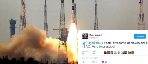 ଟେସଲା କମ୍ପାନୀ ମୁଖ୍ୟ ଟୁଇଟ୍ରେ ଲେଖିଛନ୍ତି ‘ଶୁଭେଚ୍ଛା’। ଏଥିସହିତ ଭାରତର ଜାତୀୟ ପତାକାର ଇମୋଜିକୁ ମଧ୍ୟ ପୋଷ୍ଟ କରିଛନ୍ତି। ଆଉ ଏକ ଟୁଇଟ୍ରେ ଲେଖିଛନ୍ତି,“ଇସ୍ରୋ ପାଇଁ ବଡ଼ ସଫଳତା। ବହୁତ ପ୍ରଭାବଶାଳୀ”।