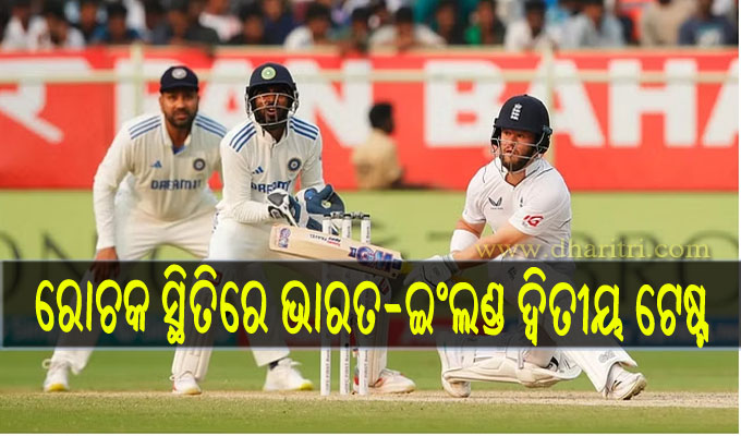 ବିଶାଖାପାଟନମ୍,୪।୨: ଭାରତ ଏବଂ ଇଂଲଣ୍ଡ ମଧ୍ୟରେ ଚାଲିଥିବା ଦ୍ୱିତୀୟ ଟେଷ୍ଟର ତୃତୀୟ ଦିନର ଖେଳ ଶେଷ ହୋଇଛି। ତୃତୀୟ ଇନିଂସରେ ଗୋଟିଏ ଉଇକେଟ ହରାଇ ଇଂଲଣ୍ଡ ୬୭ ରନ ସଂଗ୍ରହ କରିଛି। ଜିତିବା ପାଇଁ ଇଂଲଣ୍ଡ ଦଳକୁ ଆହୁରି ୩୩୨ ରନ ଆବଶ୍ୟକ। ଏଥି ସହିତ ଜିତିବା ପାଇଁ ଭାରତକୁ ନଅ ଉଇକେଟ ଦରକାର। ଇଂଲଣ୍ଡକୁ ଏକମାତ୍ର ଝଟକା ବେନ ଡକେଟଙ୍କ ରୂପରେ ଆସିଥିଲା। ତାଙ୍କୁ ଅଶ୍ୱିନ ଆଉଟ୍ କରିଥିଲେ। ସେ ୨୮ ରନ ସ୍କୋର କରିପାରନ୍ତି। ତୃତୀୟ ଦିନର ଖେଳ ଶେଷ ହେବା ବେଳକୁ ଜ୍ୟାକ କ୍ରୋଲେ ୨୯ ରନ ଏବଂ ରେହାନ ଅହମ୍ମଦ ନଅ ରନ ସହ କ୍ରିଜରେ ଅଛନ୍ତି।
