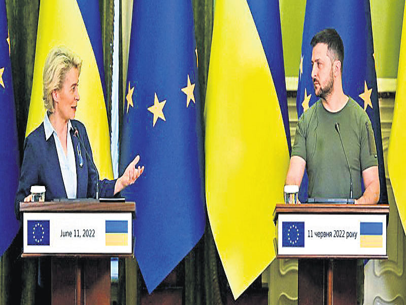 କିଭ୍, ୧୩ା୬ ୟୁରୋପୀୟ ୟୁନିୟନ (ଇୟୁ)ର ସଦସ୍ୟ ହେବା ନେଇ ୟୁକ୍ରେନ୍ ଆବଶ୍ୟକ ପ୍ରକ୍ରିୟା ଆରମ୍ଭ କରିବ କି ନା ତାହା ଆସନ୍ତା ସପ୍ତାହରେ ଜଣାପଡ଼ିବ। ଇୟୁ ମୁଖ୍ୟ ଉର୍ସୁଲା ଭୋନ୍ ଡେର୍ ଲେୟେନ୍ ଶନିବାର ୟୁକ୍ରେନ୍ ଗସ୍ତ କରିବା ପରେ ଏ ନେଇ ରାଷ୍ଟ୍ରପତି ଭୋଲୋଡିମିରଙ୍କ ସହ ଆଲୋଚନା କରିଛନ୍ତି। ତୁରନ୍ତ ଏହି ପୂର୍ବ ୟୁରୋପୀୟ ରାଷ୍ଟ୍ରକୁ ଇୟୁ ସଦସ୍ୟତା ପ୍ରଦାନ ନିମନ୍ତେ ଜେଲେନ୍ସ୍କି ଉର୍ସୁଲା ଭୋନ୍ଙ୍କୁ ନିବେଦନ କରିଛନ୍ତି। ୟୁରୋପୀୟ ସଂଘରେ ୟୁକ୍ରେନ୍ ସାମିଲ ହେବାକୁ ନେଇ ଇୟୁ ସଦସ୍ୟମାନେ ଆସନ୍ତା ସପ୍ତାହ ଶେଷ ସୁଦ୍ଧା ସେମାନଙ୍କ ମତ ରଖିବେ। ସଂଘର ସମସ୍ତ ୨୭ ସଦସ୍ୟ ରାଷ୍ଟ୍ର ସହମତ ହେବ ଆବଶ୍ୟକ। କିଭ୍ ଇୟୁରେ ସାମିଲ ନିମନ୍ତେ ସମସ୍ତ ଆବଶ୍ୟକ ମାନଦଣ୍ଡ ମଧ୍ୟ ପୂରଣ କରିବା ଜରୁରୀ। ଯଦି ୟୁକ୍ରେନ୍ ସପକ୍ଷରେ ଇୟୁ ସଦସ୍ୟ ରାଷ୍ଟ୍ର ସେମାନଙ୍କ ସମର୍ଥନ ଦିଅନ୍ତି ଦେବେ ଏହି ସଂଘରେ ଯୋଗଦେବା ପାଇଁ ଥିବା ଏକ ଦୀର୍ଘ ପ୍ରକ୍ରିୟା ଖୁବ୍ଶୀଘ୍ର ଆରମ୍ଭ ହୋଇପାରେ।