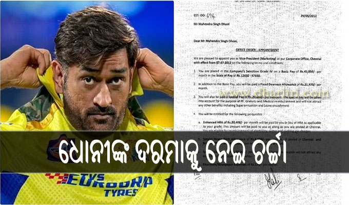 ବର୍ତ୍ତମାନ ଧୋନୀଙ୍କ ୨୦୧୨ ନିଯୁକ୍ତି ଚିଠି ସୋସିଆଲ ମିଡିଆରେ ଭାଇରାଲ ହେଉଛି। ଏହି ଚିଠିରେ ଧୋନୀଙ୍କ ମୂଳ ଦରମା ଦେଖି ପ୍ରଶଂସକମାନେ ଆଶ୍ଚର୍ଯ୍ୟ ହୋଇଯାଇଛନ୍ତି। ଏହି ଚିଠିକୁ ଆଇପିଏଲ ପ୍ରତିଷ୍ଠାତା ଲଲିତ ମୋଦି ସୋସିଆଲ ମିଡିଆରେ ଶେୟାର କରିଛନ୍ତି। ଏହି ଅନୁଯାୟୀ ଧୋନୀଙ୍କ ମାସିକ ଦରମା ସେତେବେଳେ ଥିଲା ୪୩,୦୦୦ ଟଙ୍କା।