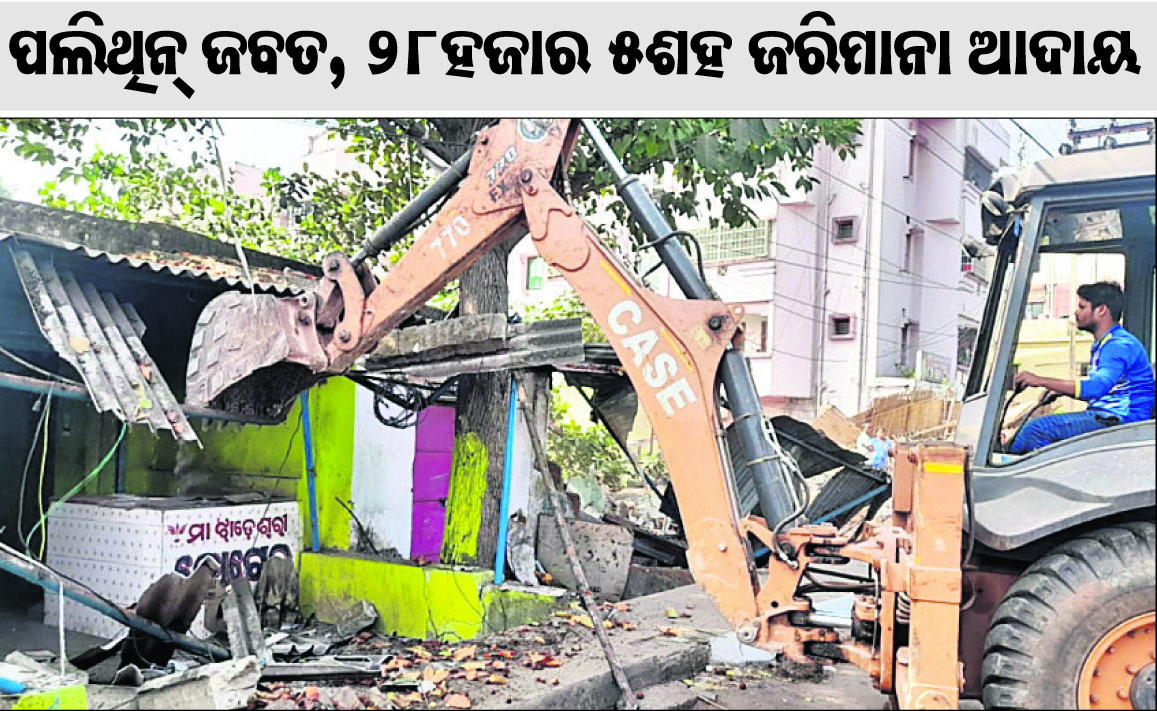 ଅପରପକ୍ଷେ ଭୀମପୁର ମୌଜାର ରାଜସ୍ବ ବିଭାଗ ଅଧୀନ ପ୍ଲଟ ନଂ. ୫୬ରୁ ଜବରଦଖଲ ଉଚ୍ଛେଦ କରାଯାଇଛି। ସଂପୃକ୍ତ ଅଞ୍ଚଳରୁ ପ୍ରାୟ ୨ହଜାର ବର୍ଗଫୁଟ ସରକାରୀ ଜମି ଜବରଦଖଲ ମୁକ୍ତ ହୋଇଛି। ସେହିପରି ସ୍ବାର୍ଡ଼ ୯, ୧୦, ୧୧ ଓ ୧୨ ପକ୍ଷରୁ ଆଚାର୍ଯ୍ୟ ବିହାରରୁ ଜୟଦେବ ବିହାର ଛକ ପର୍ଯ୍ୟନ୍ତ ଉଚ୍ଛେଦ କରାଯାଇଛି। ଲକ୍ଷ୍ମୀସାଗର, ଝାରପଡ଼ା, ବାପୁଜୀନଗର, କଳ୍ପନା ଛକସ୍ଥିତି ଫଳ ଭେଣ୍ଡିଂ ଜୋନ୍, ବମିଖାଲ ଆଦି ଅଞ୍ଚଳରେ ଖାଦ୍ୟ ନିରାପତ୍ତା, ପରିମଳ ରକ୍ଷା ଯାଞ୍ଚ ପାଇଁ ବିଭିନ୍ନ ଦୋକାନ, ବଜାର ଏବଂ ହୋଟେଲରେ ଚଢ଼ାଉ କରାଯାଇଥିଲା। ଏହି କ୍ରମରେ ୧୦ କେଜି ପଲିଥିନ୍ ଜବତ କରାଯିବା ସହ ମୋଟ ୨୮ ହଜାର ୫୦୦ ଟଙ୍କା ଜରିମାନା ଆଦାୟ କରାଯାଇଥିଲା। ସ୍କ୍ବାଡ୍ ନମ୍ବର ୧୩, ୧୪, ୧୫ ଓ ୧୬ କଳିଙ୍ଗ ଷ୍ଟୁଡ଼ିଓ ଛକରୁ ପଟାସ ଛକ ମଧ୍ୟରେ ଗଢ଼ିଉଠିଥିବା ବେଆଇନ୍ ନିର୍ମାଣକୁ ମାଟିରେ ମିଶାଇଥିଲେ। ଅନ୍ୟପଟେ ସ୍କ୍ବାଡ୍ ନମ୍ବର ୫, ୬, ୭ ଓ ୮ ରଘୁନାଥପୁର, କିଟ୍ ରୋଡ୍, ପ୍ରଶାନ୍ତି ବିହାର ଅଞ୍ଚଳରେ ଥିବା ରାସ୍ତାକଡ଼ରୁ ଜବରଦଖଲ ହଟାଇଥିଲେ। ତେବେ ପରିମଳ କ୍ଷେତ୍ରରେ ଖିଲାପ କାରଣରୁ କେତେଜଣ ବ୍ୟବସାୟୀଙ୍କ ବିରୋଧରେ କାର୍ଯ୍ୟାନୁଷ୍ଠାନ ନିଆଯାଇଛି। ଏହି କ୍ରମରେ ମୋଟ ୮ହଜାର ଟଙ୍କା ଜରିମାନା ଆଦାୟ କରାଯାଇଥିଲା।