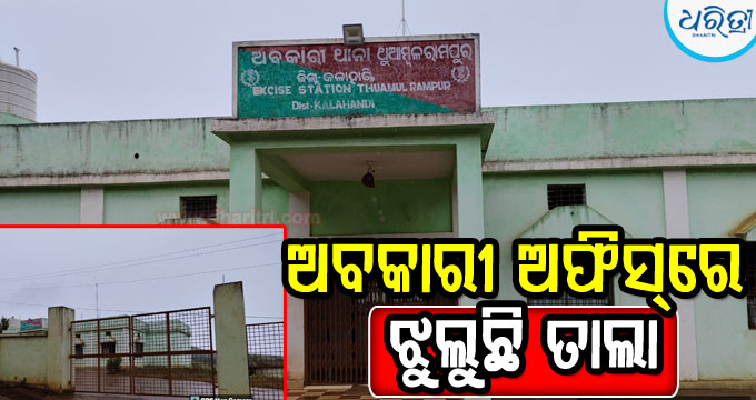 ଥୁଆମୂଳ ରାମପୁର,୨୨।୧୧(ଦୁର୍ଗା କୀର୍ତ୍ତି) କଳାହାଣ୍ଡି ଜିଲା ଥୁଆମୂଳ ରାମପୁର ବ୍ଲକରେ ଥିବା ଅବକାରୀ ଅଫିସ ବାହାର ଓ ଭିତର ଗେଟ ପ୍ରାୟ ଅଧିକାଂଶ ମାସ ହେବ ତାଲା ଝୁଲୁଛି। ଏଠାରେ ସମୁଦାୟ ୫ ଜଣ କର୍ମଚାରୀ ନିଯୁକ୍ତି ଥିବାବେଳେ ଦୁଇ ଜଣ କନଷ୍ଟେବଳ କୌଣସି ଟ୍ରେନିଂରେ ଯାଇଛନ୍ତି ଏବଂ ଅବକାରୀ ଥାନା ଭାରପ୍ରାପ୍ତ ଅଧିକାରିଣୀଙ୍କ ସମେତ ଆଉ ଦୁଇ ଜଣ କାର୍ଯ୍ୟାଳୟରେ ରହିବା କଥା ହେଲେ ପ୍ରାୟ ସମୟ ଥାନା ଭାରପ୍ରାପ୍ତ ଅଧିକାରିଣୀ ଜିଲା ମୁଖ୍ୟାଳୟରେ ବସା ବାନ୍ଧିଛନ୍ତି। ମାସକୁ ଦିନେ କିମ୍ବା ସପ୍ତାହକୁ ଥରେ ଆସି କାଗଜପତ୍ରରେ ଦସ୍ତଖତ ମାରି ଅସ୍ଥାୟୀ ରାତ୍ର ଜଗୁଆଳିଙ୍କ ହାତରେ କାର୍ଯ୍ୟାଳୟ ଛାଡ଼ି ଚାଲି ଯାଉଛନ୍ତି l
