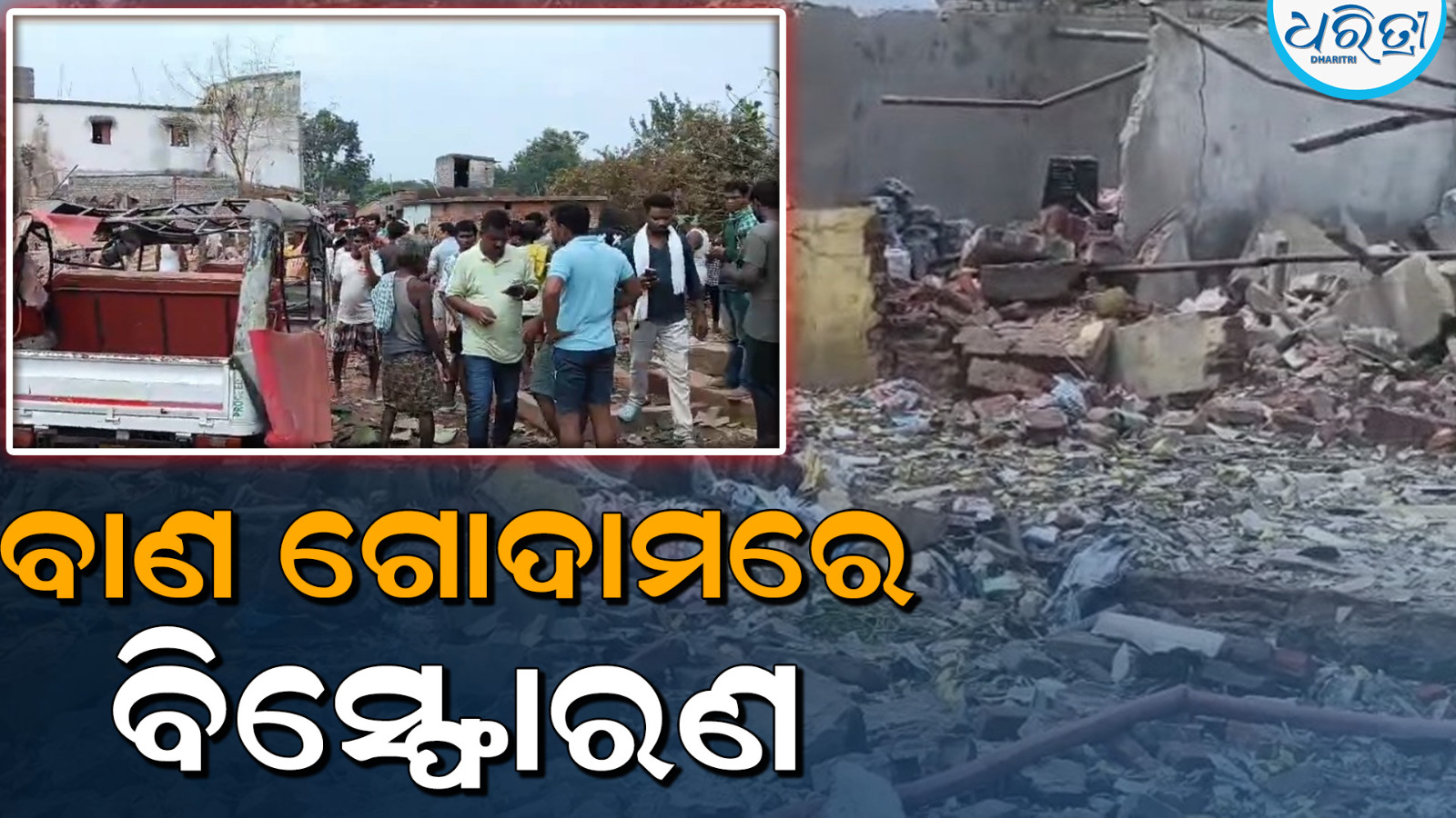 ହରଭଙ୍ଗା,୨୧ା୯: ବୌଦ୍ଧ ଜିଲା ହରଭଙ୍ଗା ବ୍ଲକ ପୁରୁଣାକଟକ ଥାନା ଅନ୍ତର୍ଗତ ଜିଆକଟା ଏବଂ ଛତ୍ରପୁର ଗ୍ରାମ ମଧ୍ୟ ଭାଗରେ ବାଣ ଗୋଦାମରେ ବଡ଼ଧରଣର ବିସ୍ଫୋରଣ ଘଟିଛି। ଏଥିରେ ଗୋଦାମ ଘର ଛାତ ସମ୍ପୂର୍ଣ୍ଣ ମାଟିରେ ମିଶିଯାଇଛି। ଏହା ସହିତ ଜଣଙ୍କର ମୃତ୍ୟୁ ଘଟିଥିବା ବେଳେ ଦୁଇ/ତିନିଜଣ ଆହତ ହୋଇଥିବା ଜଣାପଡ଼ଛି।