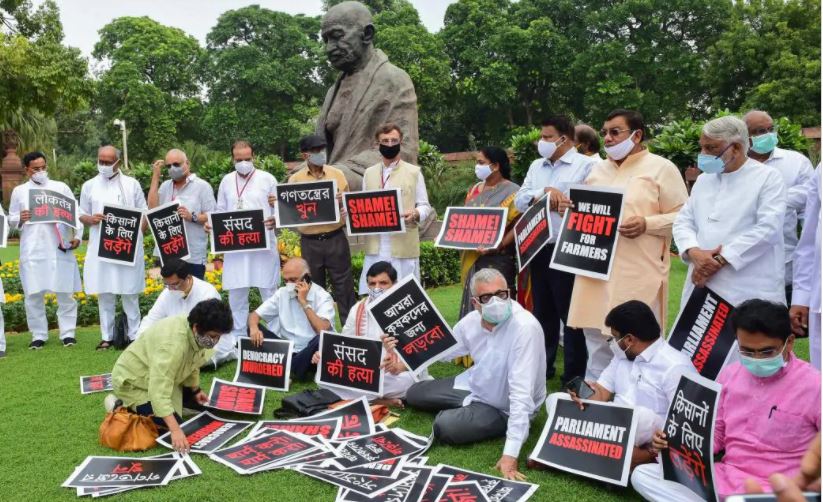 ନୂଆଦିଲ୍ଲୀ,୨୧ ।୯: କୃଷି ବିଲ୍କୁ ନେଇ ପାର୍ଲାମେଣ୍ଟରୁ ସଡ଼କ ପର୍ଯ୍ୟନ୍ତ ବିରୋଧ ଜାରି ରହିଛି । ଏହି ମହାସଂଗ୍ରାମ ମଧ୍ୟରେ ବିରୋଧି ଦଳ ରାଷ୍ଟ୍ରପତି ରାମନାଥ କୋବିନ୍ଦଙ୍କୁ ଭେଟିବାକୁ ସମୟ ମାଗିଛନ୍ତି । ବିରୋଧି ରାଷ୍ଟ୍ରପତିଙ୍କୁ ଭେଟି ୨ଟି ଯାକ ବିଲ୍ରେ ହସ୍ତାକ୍ଷର ନ କରି ପୁଣିଥରେ ରାଜ୍ୟସଭାକୁ ଫେରାଇ ଦେବାକୁ ଅନୁରୋଧ କରିବେ ବୋଲି ଅନୁମାନ କରାଯାଉଛି । ଏହାସହ ବିରୋଧି ରବିବାର ଯାହାସବୁ ଘଟିଛି ତା’ର ବିବରଣୀ ପ୍ରଦାନ କରିବେ ବୋଲି ଜଣାପଡିଛି । ସୂଚନାଯୋଗ୍ୟ, ବିରୋଧିଙ୍କ ହଟ୍ଟଗୋଳ ପରେ ବି ରବିବାର ରାଜ୍ୟ ସଭାରେ ଦୁଇଟି କୃଷି ବିଲ୍କୁ ମଞ୍ଜରୀ ପ୍ରଦାନ କରାଯାଇଛି । ଏସବୁ ପରେ ସୋମବାର ୮ ଜଣ ରାଜ୍ୟ ସଭା ସଦସ୍ୟଙ୍କୁ ନିଲମ୍ବନ କରାଯିବା ଘଟଣା ମଧ୍ୟ ରାଷ୍ଟ୍ରପତିଙ୍କ ଆଗରେ ବିରୋଧି ଉପସ୍ଥାପିତ କରିବ । କୃଷି ବିଲ୍କୁ ମଞ୍ଜୁରୀ ମଳିବା ପରେ ସାରା ଦେଶରେ କୃଷକମାନେ ଏହାର ବିରୋଧ କରିଛନ୍ତି । ଭାରତୀୟ ଜନତା ପାର୍ଟିକୁ ବାଦ୍ ଦେଲେ ପ୍ରାୟ ସମସ୍ତ ଦଳ ମଧ୍ୟ ଏହାକୁ ବିରୋଧ କରିଥିବା ଦେଖାଯାଇଛି । ସୂଚନାଯୋଗ୍ୟ, ସୋମବାର ନିଲମ୍ବିତ ହୋଇଥିବା ୮ ଜଣ ସଦସ୍ୟ ଗୃହରୁ ବାହାରକୁ ଆସିବାକୁ ରାଜି ହୋଇ ନ ଥିଲେ । ଏହାପରେ ଗୃହକାର୍ଯ୍ୟକୁ ମଙ୍ଗଳବାର ପର୍ଯ୍ୟନ୍ତ ମୁଲତବି ରଖାଯାଇଛି । ଏହାପରେ ନିଲମ୍ବିତ ସଦସ୍ୟ ପାର୍ଲାମେଣ୍ଟ ପରିସରରେ ଧାରଣାରେ ବସିଛନ୍ତି । ଏହାକୁ ନେଇ ଭାଜପା କହିଲା ଏମାନେ ପାର୍ଲାମେଣ୍ଟରେ ଗୁଣ୍ଡାରାଜ ଚଲାଇଛନ୍ତି ।