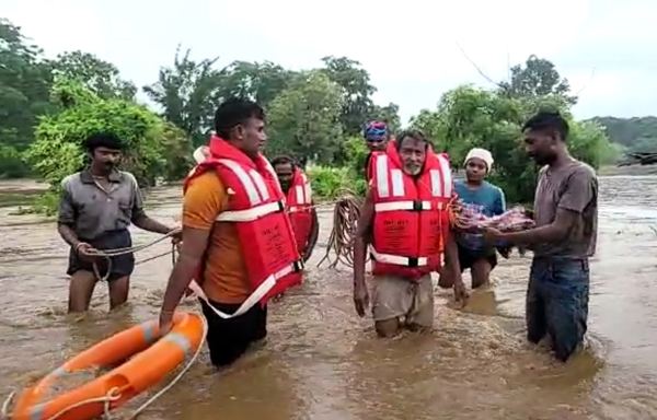 ଭବାନୀପାଟଣା,୮।୮(ସ୍ବ.ପ୍ର.): ଧାନ ତଳି ସୁରକ୍ଷିତ ସ୍ଥାନରେ ରଖିବାକୁ ଯାଇ ନଦୀରେ ଜଳବନ୍ଦୀ ହେଲେ ୨ ଚାଷୀ। ଦୀର୍ଘ ସମୟ ଧରି ଜଳରେ ଫଶି ରହିବା ପରେ ଅଗ୍ନିଶମ ବିଭାଗ ସେମାନଙ୍କୁ ଉଦ୍ଧାର କରିଛି। କଳାହାଣ୍ଡି ଜିଲାରେ ଏଭଳି ଏକ ଘଟଣା ସାମାନାକୁ ଆସିଛି। ରବିବାର କଳାହାଣ୍ଡି ଜିଲା ଜୟପାଟଣା ବ୍ଲକରେ ସବୁଠୁ ଅଧିକ ବର୍ଷା ହୋଇଥିବା ରେକର୍ଡ କରାଯାଇଛି। ବ୍ଲକର କାଦୋପଦର ଗ୍ରାମର ଅର୍ଜୁନ ମାଝି ଓ ମଣିଧାର ରାଉତ ୨ଜଣ ଚାଷୀ ଧାନ ତଳି ଚାଷ ଜମିରୁ ସୁରକ୍ଷିତ ସ୍ଥାନରେ ରଖିବାକୁ ଯାଇଥିଲେ। ଏହି ସମୟରେ ଦୁଇ ପାର୍ଶ୍ୱରେ ଥିବା ଗାଈଧାର ଓ ହାତୀ ନଦୀରେ ହଠାତ ଜଳସ୍ତର ବୃଦ୍ଧି ପାଇଥିଲା। ଫଳରେ ଏହି ୨ଜଣ ଚାଷୀ ବାହାରି ନ ପାରି ଦୀର୍ଘ ସମୟ ଧରି ଦୁଇ ନଦୀ ମଧ୍ୟରେ ଜଳବନ୍ଦୀ ହୋଇ ରହିଥିଲେ। ଘଟଣା ସମ୍ପର୍କରେ ସ୍ଥାନୀୟ ଲୋକେ ଜୟପାଟଣା ଅଗ୍ନିଶମ ବିଭାଗକୁ ଜଣାଇଥିଲେ। ପରେ ଅଗ୍ନିଶମ ବିଭାଗ ସେମାନଙ୍କୁ ସୁରକ୍ଷିତ ଭାବେ ଉଦ୍ଧାର କରିଥିଲେ। ଫଳରେ ଅଳ୍ପକେ ମୃତ୍ୟୁ ମୁଖରୁ ବଞ୍ଚତ୍ ଯାଇଥିଲେ ୨ ଚାଷୀ। ଅନ୍ୟପଟେ ବନ୍ୟା ଜଳରେ ଗୋଟିଏ ଗାଈ, ଗୋଟିଏ ପାୱାର ଟିଲର, ମୋଟର ପମ୍ପ ଭାସି ଯାଇଥିବା ଜଣାପଡିଛି।