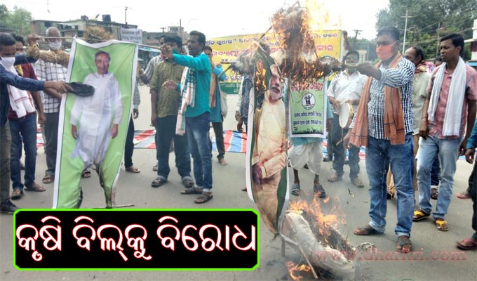 ବରଗଡ଼ ଅଫିସ,୨୫ା୯: କୃଷି ବିଲ୍କୁ ବରଗଡ଼ ଜିଲାର ବିଭିନ୍ନ କୃଷକ ସଂଗଠନ ପକ୍ଷରୁ ତୀବ୍ର ବିରୋଧ କରାଯାଇଛି। ଏହି କ୍ରମରେ ଶୁକ୍ରବାର ଚାଷୀମାନେ ରାସ୍ତାକୁ ଓହ୍ଲାଇ ଥିବାବେଳେ ଚାଷୀ ମାରଣ ନୀତିରେ ଉଭୟ ପ୍ରଧାନମନ୍ତ୍ରୀ ନରେନ୍ଦ୍ର ମୋଦି ଏବଂ ମୁଖ୍ୟମନ୍ତ୍ରୀ ନବୀନ ପଟ୍ଟନାୟକଙ୍କୁ ଦାୟୀ କରିଛନ୍ତି। ଆନ୍ଦୋଳନକୁ ଓହ୍ଲାଇଥିବା ଚାଷୀମାନେ ରାଜ୍ୟ, କେନ୍ଦ୍ର ସରକାର ବିରୋଧରେ ନାରାବାଜି ସହିତ ମୋଦି ଏବଂ ନବୀନଙ୍କ କୁଶପୁତ୍ତଳିକା ଦାହ କରିଥିଲେ। ପଶ୍ଚିମ ଓ ରାଜ୍ୟ କୃଷକ ସଂଗଠନ ଏବଂ ଜୟ କିଶାନ ଆନ୍ଦୋଳନର ବହୁସଂଖ୍ୟକ ଚାଷୀ ପ୍ରତିନିଧିମାନେ ଏଥିରେ ସାମିଲ ଥିଲେ।