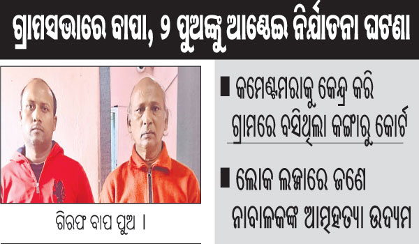 ଭୁବନେଶ୍ୱର, ୧୦।୧୨ (ବ୍ୟୁରୋ): ରାଜଧାନୀରେ ବାରମ୍ବାର ବସୁଛି କଙ୍ଗାରୁ କୋର୍ଟ। ସର୍ବ ସମ୍ମୁଖରେ ଘଟୁଛି ଅମାନୁଷିକ କାଣ୍ଡ। ହେଲେ କମିଶନରେଟ ପୋଲିସ କିଛି ଜାଣିପାରୁନି। ସୋସିଆଲ ମିଡିଆରେ ଘଟଣା ଭାଇରାଲ ହେବା ପରେ ଚେତା ପଶୁଛି। ପୂର୍ବରୁ ଏକାଧିକ ଘଟଣା ଘଟିଥିବାବେଳେ ଏବେ ଖଣ୍ଡଗିରି ଥାନା ଅନ୍ତର୍ଗତ ବରମୁଣ୍ଡା ଗ୍ରାମରେ ଆଉଏକ ସ୍ପର୍ଶକାତର ଘଟଣାକୁ ନେଇ ଚର୍ଚ୍ଚା ଜୋର୍ ଧରିଛି। କମେଣ୍ଟମରାକୁ ଗ୍ରାମସଭାରେ ବାପା ଓ ୨ ନାବାଳକ ପୁଅକୁ ଶତାଧିକ ଲୋକଙ୍କ ଆଗରେ ଆଣ୍ଠେଇବା ସହ ନିର୍ଯାତନା ଦିଆଯାଇଛି। ଏଥିସହର ଏହାର ଭିଡିଓକୁ ମଧ୍ୟ ସୋସିଆଲ ମିଡିଆରେ ଭାଇରାଲ କରାଯାଇଛି। ତେବେ ଏମାନଙ୍କ ମଧ୍ୟରୁ ଜଣେ ନାବାଳକ ଲୋକ ଲଜ୍ଜା ସହି ନ ପାରି ଫିନାଇଲ ପିଇ ଆତ୍ମହତ୍ୟା ଉଦ୍ୟମ କରିଛନ୍ତି। ଚିକିତ୍ସା ପରେ ନାବାଳକ ଜଣକ ସୁସ୍ଥ ଥିବା ସୂଚନା ମିଳିଛି। ଅଭିଯୋଗକ୍ରମେ ପୋଲିସ ଏକ ମାମଲା ମାମଲା (ନଂ.୫୯୦/୨୦୨୧) ରୁଜୁ କରି ଶୁକ୍ରବାର କାର୍ଯ୍ୟାନୁଷ୍ଠାନ ନେଇଛି। ଘଟଣା ସମ୍ପୃକ୍ତ ଅଭିଯୁକ୍ତଙ୍କ ମଧ୍ୟରୁ ବାପା ଓ ପୁଅଙ୍କୁ ପୋଲିସ ଗିରଫ କରାଯାଇଛି। ସେମାନେ ହେଲେ ବରମୁଣ୍ଡା ଗ୍ରାମର ଦିଲୀପ ପ୍ରଧାନ ଓ ତାଙ୍କ ବାପା ରମେଶ ପ୍ରଧାନ। ସମ୍ପୃକ୍ତ ଥିବା ଅନ୍ୟ ଅଭିଯୁକ୍ତମାନେ ଗିରଫ ଭୟରେ ଫେରାର ଥିବା ଜଣାପଡିଛି। ଥାନାଧିକାରୀ ଦୟାନିଧି ନାୟକ କହିଛନ୍ତି, ଏଥିରେ ଯେଉଁମାନଙ୍କ ସମ୍ପୃକ୍ତି ରହିଛି ସେମାନଙ୍କ ବିରୋଧରେ କାର୍ଯ୍ୟାନୁଷ୍ଠାନ ଗ୍ରହଣ କରାଯିବ।