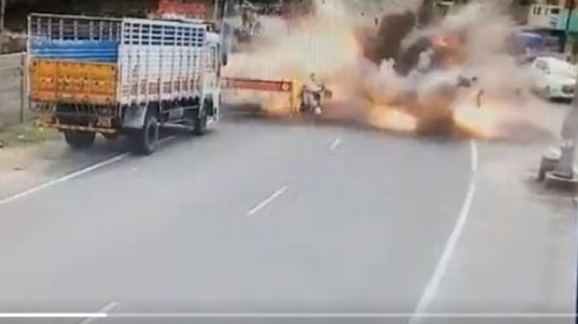 ଚେନ୍ନାଇ, ୫।୧୧: ତାମିଲନାଡୁର ଭିଲ୍ଲୁପୁରମ୍ ଜିଲାରେ ଗୁରୁବାର ବାଣ ନେଇଯାଉଥିବା ଏକ ସ୍କୁଟରରେ ବିସ୍ଫୋରଣ ହେବାରୁ ବାପ ପୁଅଙ୍କ ମୃତ୍ୟୁ ଘଟିଛି। ବିସ୍ଫୋରଣର ଦୃଶ୍ୟ ସିସିଟିଭି କ୍ୟାମେରାରେ କଏଦ ହୋଇଛି। ଏହି ଭିଡିଓ ସୋସିଆଲ ମିଡିଆରେ ଭାଇରାଲ ହୋଇଛି। ପୋଲିସ ବାରିକେଡ୍ ଅତିକ୍ରମ କରିବା ପରେ ସ୍କୁଟରଟି ବିସ୍ଫୋରଣରେ ଜଳିଯାଉଥିବା ଦେଖାଯାଇଛି। ସ୍କୁଟର ଆଗରେ ଦୁଇ ବଣ୍ଡଲ୍ ବାଣକୁ ଖୁବ୍ଜୋରରେ ବନ୍ଧାଯାଇଥିବାରୁ ଘର୍ଷଣ ଓ ଚାପ ଯୋଗୁ ଏହା ବିସ୍ଫୋରଣ ହୋଇଥିବା କୁହାଯାଉଛି। ପୋଲିସ ଘଟଣାର ଅନୁଧ୍ୟାନ କରୁଛି। ମୃତକ କଲାଇନେସାନ(୩୫) ଏକ ଅଟୋମୋବାଇଲ ପାର୍ଟ୍ସ କମ୍ପାନୀରେ କାର୍ଯ୍ୟ କରୁଥିଲେ। ସେ ଓ ତାଙ୍କ ୭ ବର୍ଷର ପୁଅ ପ୍ରଦେଶ ପୁଡ଼ୁଚେରୀରୁ ସ୍କୁଟରରେ ବାଣ ଆଣି ଆସୁଥିବା ବେଳେ ବିସ୍ଫୋରଣ ହୋଇଥିଲା। ଏହି ସମୟରେ ଭୁଲ୍ ପାର୍ଶ୍ୱରେ ଆସୁଥିବା ଏକ ବାଇକର ଚାଳକ ନିୟନ୍ତ୍ରଣ ହରାଇବାରୁ ଖସିପଡ଼ି ଆହତ ହୋଇଥିଲେ।