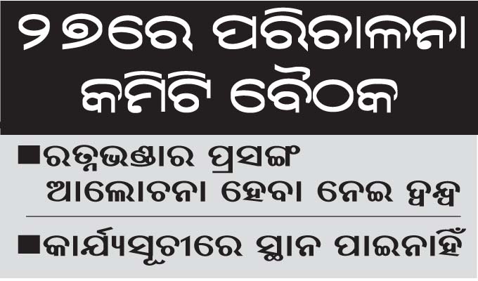 ଅନୁଯାୟୀ, ଆଗାମୀ ପରିଚାଳନା କମିଟି ବୈଠକର କାର୍ଯ୍ୟସୂଚୀରେ ଏପର୍ଯ୍ୟନ୍ତ ରତ୍ନଭଣ୍ଡାର ପ୍ରସଙ୍ଗ ସ୍ଥାନ ପାଇପାରିନାହିଁ। ତେଣୁ ବୈଠକରେ ଏହି ଗୁରୁତ୍ୱପୂର୍ଣ୍ଣ ପ୍ରସଙ୍ଗ ଆଲୋଚନା ହେବ କି ନାହିଁ ତାହା ଏବେ ବଡ଼ ପ୍ରଶ୍ନ ପାଲଟିଛି। ପରିଚାଳନା କମିଟି ସଦସ୍ୟ ଦୁର୍ଗାଦାସ ମହାପାତ୍ର କହିଛନ୍ତ, ୨୦୧୮ ମସିହାରେ ଦାଖଲ ହୋଇଥିବା ରତ୍ନଭଣ୍ଡାର ଯାଞ୍ଚ ରିପୋର୍ଟକୁ ଇତିମଧ୍ୟରେ ୪ବର୍ଷ ପୂରିଲାଣି। ଏହାପରେ ଗତ ଅଗଷ୍ଟରେ ଏଏସ୍ଆଇ ପୁଣି ଥରେ ରତ୍ନଭଣ୍ଡାର ସୁରକ୍ଷା ସମ୍ପର୍କିତ ଏକ ଚିଠି ଲେଖି ଏହାର ମରାମତି ଦାବି କରିଛି। ଏଣୁ ଏହି ପ୍ରସଙ୍ଗରେ ଆଗାମୀ ପରିଚାଳନା କମିଟି ବୈଠକଗୁଡ଼ିକରେ ବିସ୍ତୃତ ଭାବେ ଆଲୋଚନା କରାଯିବ। ରତ୍ନଭଣ୍ଡାର ନିରୀକ୍ଷଣ ଓ ମରାମତି ନେଇ ଆନୁଷଙ୍ଗିକ ପ୍ରସ୍ତୁତି ପାଇଁ କେତେ ସମୟ ଲାଗିବ ସେ ସଂକ୍ରାନ୍ତରେ ଆଲୋଚନା ହେବ। ଏଥିସହ ରତ୍ନଭଣ୍ଡାରରେ ଥିବା ସ୍ବର୍ଣ୍ଣ ଅଳଙ୍କାର କିଭଳି ଭାବେ ସ୍ଥାନାନ୍ତର କରାଯିବ, ତାହାକୁ ମଧ୍ୟ ଆଲୋଚନାରେ ସାମିଲ କରାଯିବ। ରତ୍ନଭଣ୍ଡାର ଖୋଲାଯିବା ଓ ଏହାର ଚାବି ସମ୍ପର୍କରେ ଦୁଇଟି ଜନସ୍ବାର୍ଥ ମାମଲା ଦାଏର ହୋଇଛି। ଏହି ଦୁଇ ମାମଲା ସଂକ୍ରାନ୍ତରେ ବିଚାରବିମର୍ଶ କରାଯାଇ ଚୂଡ଼ାନ୍ତ ନିଷ୍ପତ୍ତି ନିଆଯିବ। ରତ୍ନଭଣ୍ଡାର ସୁରକ୍ଷା ପାଇଁ ପରିଚାଳନା କମିଟି ସଦା ସଜାଗ ବୋଲି ସେ ପ୍ରକାଶ କରିଛନ୍ତି। ଅନ୍ୟପକ୍ଷରେ ପରିଚାଳନା କମିଟିର ଅନ୍ୟତମ ସଦସ୍ୟ ଅନନ୍ତ ତିଆଡ଼ି କହିଛନ୍ତି, ମୁଖ୍ୟତଃ ଗତ ଅଗଷ୍ଟ ୬ ପରିଚାଳନା କମିଟିର ବିବରଣୀ ଦୃଢ଼ୀକରଣ, ମେ ୨୧ ଓ ଜୁନ ୭ ବୈଠକର ବିବରଣୀ ଅନୁପାଳନ, ନୀତି ସମ୍ପର୍କିତ ଆଲୋଚନା, ଶ୍ରୀଜଗନ୍ନାଥ ମହାପ୍ରଭୁଙ୍କ ଜମି, ଆଦର୍ଶ ଗୁରୁକୁଳ, ସେବକ ବାସଗୃହ ଓ ଅନ୍ୟାନ୍ୟ ପ୍ରସଙ୍ଗରେ ଆଲୋଚନା ହେବା ନେଇ ନିଷ୍ପତ୍ତି ହୋଇଛି। ତେବେ ଆଲୋଚନା କାର୍ଯ୍ୟସୂଚୀରେ ରତ୍ନଭଣ୍ଡାର ପ୍ରସଙ୍ଗ ନାହିଁ। ତେଣୁ ଏହା ଉପରେ ଆଲୋଚନା ହେବ କି ନାହିଁ ତାହା କହିବା ସମ୍ଭବପର ନୁହେଁ। ଆଲୋଚନାରେ ରତ୍ନଭଣ୍ଡାର ପ୍ରସଙ୍ଗକୁ ସାମିଲ କରିବାକୁ ହେଲେ ସଭାପତିଙ୍କ ଅନୁମୋଦନ ଆବଶ୍ୟକ ହେବ। ଏଣୁ କମିଟି ସଦସ୍ୟ ଦାବି କଲେ ଏବଂ ଅଧ୍ୟକ୍ଷ ଅନୁମୋଦନ ଦେଲେ ହିଁ ଏହି ପ୍ରସଙ୍ଗ ନେଇ ଆଲୋଚନା ହୋଇପାରେ। ସେହିପରି କମିଟିର ଅନ୍ୟତମ ସଦସ୍ୟ ମାଧବ ପୂଜାପଣ୍ଡା ମଧ୍ୟ ରତ୍ନଭଣ୍ଡାର ପ୍ରସଙ୍ଗ ଆଲୋଚନା ନେଇ ଦ୍ୱନ୍ଦ୍ୱରେ ଅଛନ୍ତି। ସେ କହିଛନ୍ତି, ତାହା ଆଲୋଚନା ହୋଇପାରେ ଏବଂ ନ ହୋଇ ବି ପାରେ। ଏବେଠୁ କିଛି କହିହେବନାହିଁ। ଅନ୍ୟପକ୍ଷରେ ଏ ନେଇ ସୂଚନା ଅଧିକାର କର୍ମୀ ଦିଲୀପ ବରାଳ କହିଛନ୍ତି, ଭିତର ରତ୍ନଭଣ୍ଡାର ସ୍ଥିତି ଯାଞ୍ଚ ପାଇଁ ହାଇକୋର୍ଟ ଦେଇଥିବା ନିର୍ଦ୍ଦେଶ ଏପର୍ଯ୍ୟନ୍ତ କାର୍ଯ୍ୟକାରୀ ହୋଇନାହିଁ। ତେଣୁ ଆସନ୍ତା ପରିଚାଳନା କମିଟି ବୈଠକରେ ଏହି ପ୍ରସଙ୍ଗରେ ଆଲୋଚନା କରାଯିବାର ଆବଶ୍ୟକତା ରହିଛି। ମାତ୍ର କୌଣସି ଅଡୁଆ ପରିସ୍ଥିତିରେ ପଡ଼ିବା ଆଶଙ୍କାରେ ରାଜ୍ୟ ସରକାର ରତ୍ନଭଣ୍ଡାର ଖୋଲିବାକୁ ଡରୁଥିବାରୁ ପରିଚାଳନା କମିଟି ଏହି ଗୁରୁତ୍ୱପୂର୍ଣ୍ଣ ପ୍ରସଙ୍ଗକୁ ଏଡ଼ାଇ ଯିବାକୁ ବାଧ୍ୟ ହେଉଛି। ଶ୍ରୀଜଗନ୍ନାଥ ସେନା ଆବାହକ ଆଇନଜୀବୀ ପ୍ରିୟଦର୍ଶନ ପଟ୍ଟନାୟକ ମଧ୍ୟ ସମାନ ମତ ପୋଷଣ କରିଛନ୍ତି। ପରିଚାଳନା କମିଟି ବୈଠକରେ ଏହି ପ୍ରସଙ୍ଗରେ ଆଲୋଚନା ହେବା ଉଚିତ ବୋଲି ସେ କହିଛନ୍ତି। ତେବେ ରତ୍ନଭଣ୍ଡାର ମରାମତ