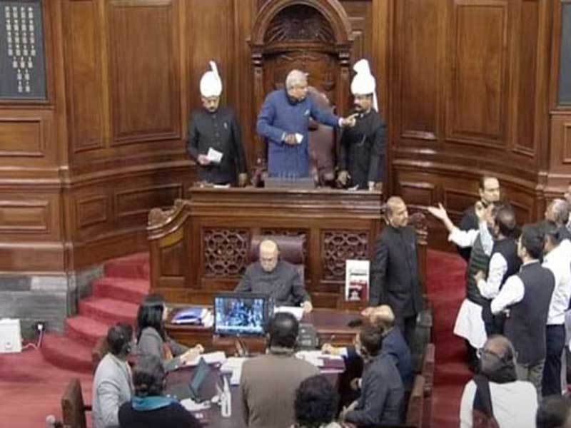 ରାଜ୍ୟସଭାରେ ହଟ୍ଟଗୋଳ ସମୟରେ ଏମ୍ପି ରାଘବ ଚାଧା, ସଞ୍ଜୟ ସିଂ, ଇମ୍ରାନ ପ୍ରତାପଗରୀ, ଶକ୍ତି ସିଂ ଗୋହିଲ, ସନ୍ଦୀପ ପ।ଠକ ଏବଂ କୁମାର କେଟକର୍ ବେଲରେ ପହଞ୍ଚିଥିଲେ। ଏହା ପରେ ଅଧ୍ୟକ୍ଷ ସମସ୍ତ ସଦସ୍ୟମାନଙ୍କୁ ଚେତାବନୀ ଦେଇଥିଲେ।
