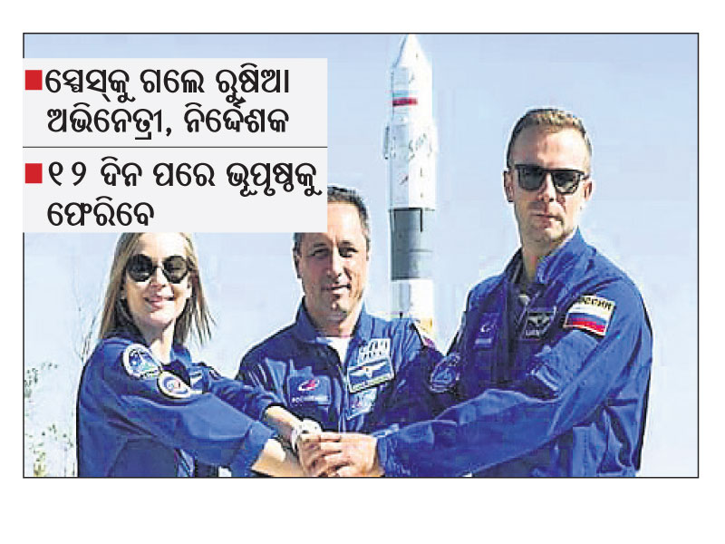 ମସ୍କୋ, ୬ା୧୦: ଏଣିକି ମହାକାଶରେ ଶୁଭିବ ଲାଇଟ୍ସ, କ୍ୟାମେରା ଏବଂ ଆକ୍ସନ ଶବ୍ଦ। ପର୍ଯ୍ୟଟନ ପରେ ଏବେ ଦୁନିଆ ଦେଖିବ ସ୍ପେସ୍ରେ ଫିଲ୍ମ ଶୁଟିଂ ଦୃଶ୍ୟ। ମହାକାଶ ଇତିହାସରେ ପ୍ରଥମ ଥର ପାଇଁ ରୁଷିଆ ଏଭଳି ବିରଳ ରେକର୍ଡର ଅଧିକାରୀ ହେବାକୁ ଯାଉଛି। ପୃଥିବୀ କକ୍ଷରେ ଚଳଚ୍ଚିତ୍ର ‘ଚ୍ୟାଲେଞ୍ଜ’ର ଶୁଟିଂ ପାଇଁ ମଙ୍ଗଳବାର ସ୍ଥାନୀୟ ସମୟ ଅପରାହ୍ନ ୧ଟା ୫୫ରେ ରୁଷିଆ ସ୍ପେସ୍କ୍ରାଫ୍ଟ ସୌୟୁଜ୍ ଏମ୍-୧୯ ଯୋଗେ ଅନ୍ତର୍ଜାତୀୟ ସ୍ପେସ୍ ଷ୍ଟେଶନ ଅଭିମୁଖେ ଯାଇଛନ୍ତି ଅଭିନେତ୍ରୀ ୟୁଲିଆ ପେରେସିଲ୍ଡ ଏବଂ ନିର୍ଦ୍ଦେଶକ କ୍ଲିମ୍ ଶିପେନ୍କୋ। ୩ଟି ସ୍ପେସ୍ ମିଶନର ଅନୁଭୂତି ଥିବା ମହାକାଶଚାରୀ ଆନ୍ଟୋନ୍ ଶ୍କାପ୍ଲେରୋଭ ମଧ୍ୟ ଉକ୍ତ ସ୍ପେସ୍କ୍ରାଫ୍ଟରେ ଯାତ୍ରା କରିଛନ୍ତି। କାଜାଖସ୍ତାନର ବୈକୋନୁରସ୍ଥିତ ରୁଷିଆର ସ୍ପେସ୍ ଲଞ୍ଚ ଷ୍ଟେଶନରୁ ଏହି ମହାକାଶ ଯାନ ବାହାରି ପୃଥିବୀ କକ୍ଷପଥରେ ପହଞ୍ଚିଛି।