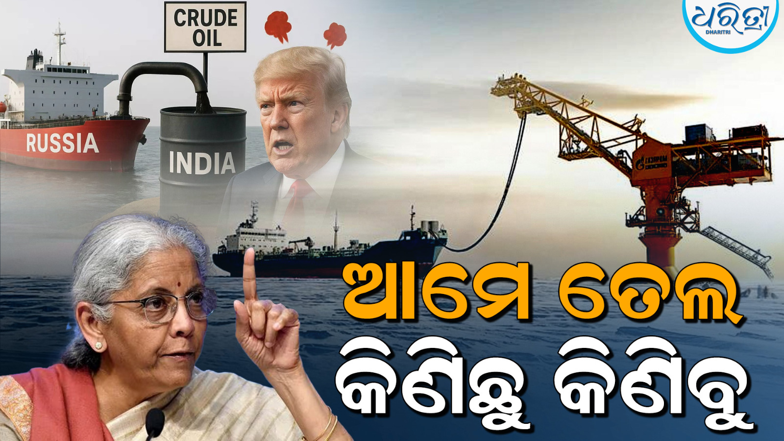 ନୂଆଦିଲ୍ଲୀ,୬ା୯: ରୁଷିଆରୁ ତେଲ ନ କିଣିବା ପାଇଁ ଆମେରିକା ଭାରତ ଉପରେ ଲଗାତର ଚାପ ପକାଉଛି। ଏଥିପାଇଁ ଭାରତୀୟ ସାମଗ୍ରୀ ଉପରେ ଜରିମାନା ସ୍ବରୂପ ୨୫ ପ୍ରତିଶତ ଅତିରିକ୍ତ ଶୁଳ୍କ ମଧ୍ୟ ଲଗାଯାଇଥିଲା। ଏହା ସହିତ ଭାରତ ଉପରେ ଶୁଳ୍କ ଏବେ ୫୦ ପ୍ରତିଶତକୁ ବୃଦ୍ଧି ପାଇଛି। ଏସବୁ ମଧ୍ୟରେ, କେନ୍ଦ୍ର ଅର୍ଥମନ୍ତ୍ରୀ ନିର୍ମଳା ସୀତାରମଣଙ୍କ ଏକ ବଡ଼ ବୟାନ ଆସିଛି। ସେ କହିଛନ୍ତି ଯେ, ଭାରତ ରୁଷିଆରୁ ଅଶୋଧିତ ତେଲ କିଣିବା ଜାରି ରଖିବ। ସେ ଏହା ମଧ୍ୟ କହିଛନ୍ତି ଯେ, ଶକ୍ତି ସମ୍ପର୍କରେ ନିଆଯାଇଥିବା ନିଷ୍ପତ୍ତି ସମ୍ପୂର୍ଣ୍ଣ ଭାବରେ ଜାତୀୟ ସ୍ବାର୍ଥ ଉପରେ ଆଧାରିତ। ଆମେ କ’ଣ କରିବୁ ନ କରିବୁ ସେ ନିଷ୍ପତ୍ତି ଆମର ବୋଲି ଅର୍ଥମନ୍ତ୍ରୀ ସିଧାସିଧା ପରୋକ୍ଷରେ ଟ୍ରମ୍ପଙ୍କୁ ଶୁଣାଇ ଦେଇଛନ୍ତି।