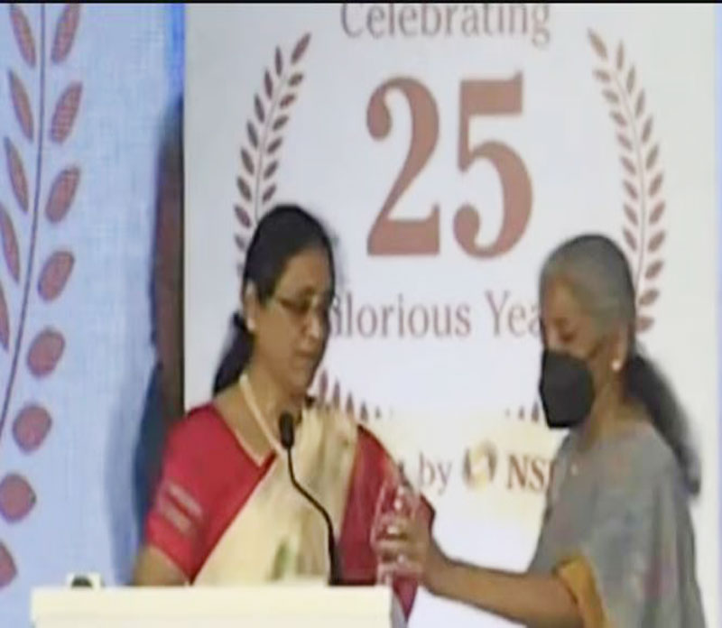 ନୂଆଦିଲ୍ଲୀ, ୯।୫ : ସୋସିଆଲ ମିଡିଆରେ କେନ୍ଦ୍ରୀୟ ଅର୍ଥମନ୍ତ୍ରୀ ନିର୍ମଳା ସୀତାରମଣଙ୍କ ଏକ ଭିଡ଼ିଓ ଏବେ ଭାଇରାଲ ହେବାରେ ଲାଗିଛି। ୟୁଜର ଅର୍ଥମନ୍ତ୍ରୀଙ୍କୁ ପ୍ରଶଂସା କରୁଛନ୍ତି। ମୁମ୍ବାଇରେ ଏକ କାର୍ଯ୍ୟକ୍ରମରେ ଯୋଗଦେବା ସମୟର ତାଙ୍କର ଏହି ଭିଡିଓ ଭାଇରାଲ ହେବାରେ ଲାଗିଛି। ଯେଉଁଥିରେ ଅନେକ ଅନୁଷ୍ଠାନ ଏବଂ ବିଭାଗର ଅଧିକାରୀ ମଧ୍ୟ ସାମିଲ ହୋଇଥିଲେ। ଯେତେବେଳେ ନ୍ୟାଶନାଲ ସିକ୍ୟୁରିଟି ଡିପୋଜିଟୋରୀ ଲିମିଟେଡର ପରିଚାଳନା ନିର୍ଦ୍ଦେଶିକା ପଦ୍ମଜା ଚୁନ୍ଦୁରୁ ସମ୍ବୋଧିତ କରୁଥିଲେ, ସେତେବେଳେ ସୀତାରମଣଙ୍କ ଏକ ବିଶେଷ କାର୍ଯ୍ୟ ଲୋକଙ୍କ ହୃଦୟ ଜିଣି ପାରିଛି।