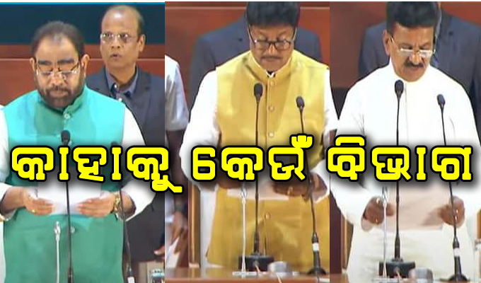 ଭୁବନେଶ୍ୱର,୨୨ା୫(ବ୍ୟୁରୋ): ସୋମବାର ଲୋକସେବା ଭବନର ସମ୍ମିଳନୀ କକ୍ଷରେ ରାଜ୍ୟର ୩ ମନ୍ତ୍ରୀ କ୍ୟାବିନେଟ୍ ମନ୍ତ୍ରୀ ଭାବେ ଶପଥ ନେଇଥିବା ବେଳେ ବର୍ତ୍ତମାନ ଏହି ୩ ମନ୍ତ୍ରୀଙ୍କୁ ବିଭାଗ ବଣ୍ଟନ କରାଯାଇଛି। ମୁଖ୍ୟମନ୍ତ୍ରୀ ନବୀନ ପଟ୍ଟନାୟକ ୩ ମନ୍ତ୍ରୀଙ୍କୁ ବିଭାଗ ଦାୟିତ୍ୱ ବଣ୍ଟନ କରିଛନ୍ତି। ବିକ୍ରମ କେଶରୀ ଆରୁଖଙ୍କୁ ଅର୍ଥ ବିଭାଗ ଦାୟିତ୍ୱ ମିଳିଥିବା ବେଳେ ସୁଦାମ ମାରାଣ୍ଡିଙ୍କୁ ବିଦ୍ୟାଳୟ ଗଣଶିକ୍ଷା ଏବଂ ସାରଦା ନାୟକଙ୍କୁ ଶ୍ରମ ବିଭାଗ ଦାୟିତ୍ୱ ମିଳିଛି।