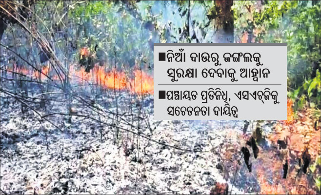 ଏ ସଂକ୍ରାନ୍ତରେ ଜିଲାପାଳ ସରୋଜ କୁମାର ସେଠୀ କୁହନ୍ତି, ଜିଲାର ଜଙ୍ଗଲ ସମ୍ପଦକୁ ନିଅଁାଦାଉରୁ ରକ୍ଷା କରିବା ପାଇଁ ଜିଲାବାସୀଙ୍କୁ ନିବେଦନ କରାଯାଇଛି। ଲୋକଙ୍କୁ ଏ ଦିଗରେ ସଚେତନ କରାଇବା ପାଇଁ ପଞ୍ଚାୟତ ପ୍ରତିନିଧି, ଏସ୍ଏଚ୍ଜିକୁ ଦାୟିତ୍ୱ ପ୍ରଦାନ କରାଯାଇଛି। ଏ ସମ୍ପର୍କରେ ନିୟମିତ ସମୀକ୍ଷା କରାଯିବ।