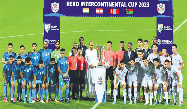 ଭୁବନେଶ୍ୱର, ୧୦ା୬(ସ୍ପୋଟର୍‌ସ ବ୍ୟୁରୋ): ଭୁବନେଶ୍ୱରସ୍ଥିତ କଳିଙ୍ଗ ଷ୍ଟାଡିୟମରେ ଆରମ୍ଭ ହୋଇଯାଇଛି ଇଣ୍ଟର କଣ୍ଟିନେଣ୍ଟାଲ କପ୍‌ ଫୁଟବଲ ଟୁର୍ନାମେଣ୍ଟ। ପ୍ରଥମ ଦିନର ଖେଳରେ ଭାରତ ଓ ଲେବାନନ୍‌ ବିଜୟୀ ହୋଇଛନ୍ତି। ଭାରତ ୨-୦ରେ ମଙ୍ଗୋଲିଆକୁ ଏବଂ ଲେବାନନ ୩-୧ରେ ଭାନୁଆଟୁକୁ ପରାସ୍ତ କରିଥିଲା। ଭାରତୀୟ ଜାତୀୟ ଫୁଟବଲ ଦଳ ପ୍ରଥମ ଥର ପାଇଁ କଳିଙ୍ଗ ଷ୍ଟାଡିୟମରେ ଖେଳୁଥିବା ବେଳେ ମୁଖ୍ୟମନ୍ତ୍ରୀ ନବୀନ ପଟ୍ଟନାୟକ ମୁଖ୍ୟ ଅତିଥି ଭାବରେ ଯୋଗ ଦେଇ ଟୁର୍ନାମେଣ୍ଟକୁ ଉଦ୍‌ଘାଟନ କରିଥିଲେ। ଭାରତ ଓ ମଙ୍ଗୋଲିଆ ଦଳର ଖେଳାଳିଙ୍କ ସହିତ ମୁଖ୍ୟମନ୍ତ୍ରୀ ପରିଚୟ ହେବା ସହିତ ଶୁଭେଚ୍ଛା ଜଣାଇଥିଲେ। ଏହା ବ୍ୟତିତ ସର୍ବଭାରତୀୟ ଫୁଟବଲ ମହାସଂଘ ସଭାପତି କଲ୍ୟାଣ ଚୌବେ ଓ ମହାସଚିବ କଲ୍ୟାଣ ଚୌବେ ମଧ୍ୟ ଉପସ୍ଥିତ ଥିଲେ।