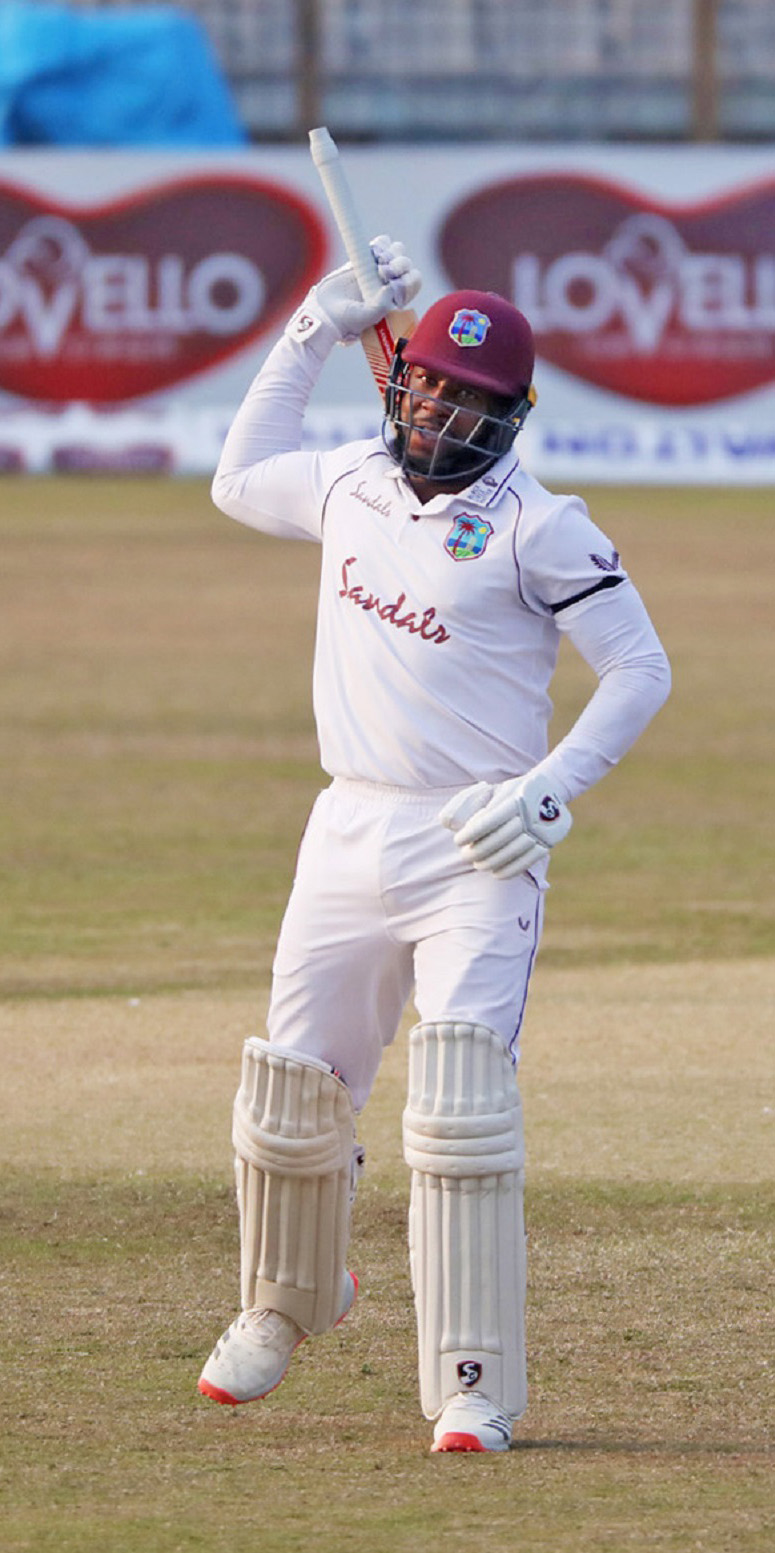 ଚତୁର୍ଥ ଦିବସର ଅସମାପ୍ତ ଦ୍ୱିତୀୟ ଇନିଂସ ସ୍କୋର ୧୧୦/୩ରୁ ଓ୍ବେଷ୍ଟଇଣ୍ଡିଜ ଖେଳ ଆରମ୍ଭ କରିଥିଲା। ଓଭରନାଇଟ୍ ବ୍ୟାଟ୍ସମ୍ୟାନ କାଇଲ ମେୟର୍ସ ୩୭ ରନରୁ ଖେଳ ଆରମ୍ଭ କରି ୨୧୦ ରନ କରି ଅପରାଜିତ ରହିବା ସହ ଦଳକୁ ବିଜୟୀ କରାଇଥିଲେ। ସେହିପରି ଏନକ୍ରୁମା ବୋନର ୧୫ ରନରୁ ଖେଳ ଆରମ୍ଭ କରି ୮୬ ରନର ଅର୍ଦ୍ଧଶତକୀୟ ଇନିଂସ ଖେଳି ଆଉଟ ହୋଇଥିଲେ। ମେୟର୍ସ ପାଖାପାଖି ୭ ଘଣ୍ଟା କ୍ରିଜ୍ରେ ରହି ୩୧୦ଟି ବଲ୍ର ସମ୍ମୁଖୀନ ହୋଇ ୨୦ ଚୌକା ଓ ୭ ଛକା ମାରିଥିଲେ। ପ୍ରଥମ ଇନିଂସରେ ମେୟର୍ସ ୪୦ ରନ ସଂଗ୍ରହ କରିଥିଲେ। ଫଳରେ ସେ ମ୍ୟାଚ୍ରେ ମୋଟ ଉପରେ ୨୫୦ ରନ ସଂଗ୍ରହ କରିଛନ୍ତି। ପଦାର୍ପଣରେ ଏହା ଓ୍ବେଷ୍ଟଇଣ୍ଡିଜ ପାଇଁ ଦ୍ୱିତୀୟ ସର୍ବାଧିକ ସ୍କୋର ସାବ୍ୟସ୍ତ ହୋଇଛି। ଚତୁର୍ଥ ଉଇକେଟରେ ମେୟର୍ସ ଓ ଏନ୍କ୍ରୁମା ୨୧୬ ରନ ସଂଗ୍ରହ କରି ବାଂଲାଦେଶ ବୋଲରଙ୍କୁ ନିରାଶ କରିଥିଲେ। ଦଳ ତରଫରୁ ଅନ୍ୟମାନଙ୍କ ମଧ୍ୟରେ ଜେର୍ମାଇନ୍ ବ୍ଲାକଉଡ୍ ୯, ଉଇକେଟକିପର ବ୍ୟାଟ୍ସମ୍ୟାନ ଜୋଶୁଆ ଡା ସିଲ୍ଭା ୨୦ ରନ କରି ଆଉଟ ହୋଇଥିଲେ। କେମର ରୋଚ ଖାତା ଖୋଲିପାରି ନ ଥିଲେ। ରାହକିମ କର୍ନଓ୍ବାଲ ବିନା ସ୍କୋରରେ ଅପରାଜିତ ରହିଥିଲେ। ଶନିବାର ଓପନର ତଥା ଅଧିନାୟକ କ୍ରେଗ୍ ବ୍ରାଥ୍ଓ୍ବେଟ ୨୦, ଜନ୍ କ୍ୟାମ୍ପ୍ବେଲ ୨୩ ଓ ଶାନେ ମୋସ୍ଲି ୧୨ ରନ କରି ଆଉଟ ହୋଇଥିଲେ। ବୋଲିଂରେ ବାଂଲାଦେଶ ତରଫରୁ ମେହିଦୀ ହାସନ ମିରାଜ ସର୍ବାଧିକ ୪, ତାଇଜୁଲ ଇସ୍ଲାମ ୨ ଓ ନୟିମ ହାସନ ଗୋଟିଏ ଉଇକେଟ ଅକ୍ତିଆର କରିଥିଲେ।