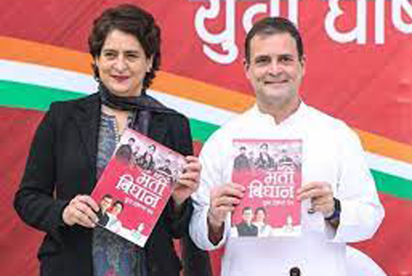 ନୂଆଦିଲ୍ଲୀ,୨୧।୧: ଉତ୍ତରପ୍ରଦେଶ ବିଧାନସଭା ନିର୍ବାଚନ ଯେତିକି ପାଖେଇ ଆସୁଛି ରାଜନୈତିକ ଉସ୍ମତା ବଢିବାରେ ଲାଗିଛି। ପ୍ରମୁଖ ରାଜନୈତିକ ଦଳଗୁଡିକ ଲୋକଙ୍କୁ ଆକୃଷ୍ଟ କରିବାକୁ ଲାଗି ପଡିଛନ୍ତି। ଏଭଳି ସ୍ଥିତିରେ କଂଗ୍ରେସ ନେତା ରାହୁଲ ଗାନ୍ଧୀ ଏବଂ ପ୍ରିୟଙ୍କା ଗାନ୍ଧୀ ଭଦ୍ରା ଶୁକ୍ରବାର ଦିଲ୍ଲୀ ପାର୍ଟି ମୁଖ୍ୟାଳୟରେ ଯୁବବର୍ଗଙ୍କ ପାଇଁ ’ଭାରତୀ ବିଧାନ’ ନାମକ ଏକ ମେନିଫେଷ୍ଟୋ (ନିର୍ବାଚନୀ ଇସ୍ତାହାର) ଉନ୍ମୋଚନ କରିଛନ୍ତି।