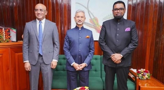 ନୂଆଦିଲ୍ଲୀ,୨୩।୪: ବୈଦେଶିକ ମନ୍ତ୍ରୀ ଏସ ଜୟଶଙ୍କର ଗୁଆନା ଗସ୍ତରେ ଅଛନ୍ତି। ଶନିବାର ସେ ଗୁଆନାର ପ୍ରଧାନମନ୍ତ୍ରୀ ମାର୍ଗ ଫିଲିପଙ୍କ ସହ ସାକ୍ଷାତ କରିଛନ୍ତି। ଉଭୟ ଦେଶର ନେତାଙ୍କ ସାକ୍ଷାତକାର ସମୟରେ ଶକ୍ତି, ବିପର୍ଯ୍ୟୟ ପରିଚାଳନା ଏବଂ ପ୍ରତିରକ୍ଷା ସହଯୋଗ ଭଳି ପ୍ରସଙ୍ଗ ଉପରେ ଆଲୋଚନା କରାଯାଇଥିଲା। ଏହି ବୈଠକରେ ଭାରତୀୟ ବୈଦେଶିକ ମନ୍ତ୍ରୀ ଏସ ଜୟଶଙ୍କର କହିଛନ୍ତି ଯେ ଦକ୍ଷିଣ ଆମେରିକା ବିକାଶ ଯାତ୍ରାରେ ଭାରତ ଏକ ଅଶିଂଦାର ହେବ। ସୂଚନାଯୋଗ୍ୟ, ଜୟଶଙ୍କରଙ୍କର ଏହା ହେଉଛି ପ୍ରଥମ ଗୁଆନା ଗସ୍ତ। ଏହି ଗସ୍ତକୁ ନେଇ ଜୟଶଙ୍କର ଟୁଇଟ କରି କହିଛନ୍ତି ଯେ ଗୁଆନାରେ ସେ ପ୍ରଧାନମନ୍ତ୍ରୀ ଫିଲିପ ଓ ଅନ୍ୟ ନେତାଙ୍କୁ ଭେଟି ଖୁବ ଖୁସି ହୋଇଛନ୍ତି।
