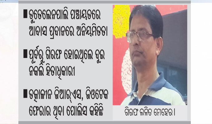 ସୂଚନା ଅନୁସାରେ ତେଲେନପାଲି ପଞ୍ଚାୟତ କର୍ଲାମାଲ ଗାଁରେ ୨୦୧୯-୨୦ ଆର୍ଥିକ ବର୍ଷରେ କୌଶଲ୍ୟା ଚିରାଗୁନଙ୍କ ନାମରେ ପ୍ରଧାନମନ୍ତ୍ରୀ ଆବାସ ଗୃହ ମଞ୍ଜୁର ହୋଇଥିଲା। ହେଲେ ତାଙ୍କ କୋଡ ବ୍ୟବହାର କରି ଗାଁର ଟିକେଚନ ବାଗଙ୍କୁ ଚଞ୍ଚକତା କରି ଗୃହ ଦିଆଯାଇଥିବା ନେଇ କୌଶଲ୍ୟା ଅଭିଯୋଗ କରିଥିଲେ। ସେହିପରି ଯୁନାନିବାହାଲ ଗାଁରେ ମଧ୍ୟ ଭଏ ମୁଣ୍ଡାଙ୍କ ନାମରେ କେହି ନ ଥିବା ବେଳେ ତାର ନାମରେ ଅନଲାଇନରେ ଘର ଦିଆଯାଉଥିବା ଦର୍ଶାଯାଇଥିଲା। ତେବେ ସେହି କୋଡର ଘର ରୂପା ଧରୁଆଙ୍କୁ ଦିଆଯାଇଥିବା ଅଭିଯୋଗ ହୋଇଥିଲା। ଏହି ଅନିୟମିତତାରେ ତତ୍କାଳୀନ ପଞ୍ଚାୟତ ନିର୍ବାହୀ ଅଧିକାରୀ ଲଳିତ ମେହେର, ତତ୍କାଳୀନ ଜିଆର୍ଏସ ବିପିନ ବେହେରା, ଜିଓଟେକ ଗୋଲାପ ପୋଡ଼ ଦାୟୀ ବୋଲି ଜିଲା କର୍ତ୍ତୃପକ୍ଷ ଥାନାରେ ମାମଲା ରୁଜୁ କରିବାକୁ ବିଡ଼ିଓଙ୍କୁ ନିର୍ଦ୍ଦେଶ ଦେଇଥିଲେ। ଏହାପରେ ଖପ୍ରାଖୋଲ ଥାନାରେ ଗତ ତା୮ା୯ା୧୦୨୩ରିଖରେ ବିଭିନ୍ନ ଦଫାରେ ଏକ ମାମଲା (୧୫୯/୨୩)ରୁଜୁ ହୋଇଥିଲା। କିଛିଦିନ ତଳେ ଦୁଇ ନକଲି ହିତାଧିକାରୀଙ୍କୁ ଗିରଫ କରି କୋର୍ଟଚାଲାଣ କରାଯାଇଥିବାବେଳେ ପୂର୍ବତନ ପଞ୍ଚାୟତ ନିର୍ବାହୀ ଅଧିକାରୀ ମେହେରଙ୍କୁ ବେଙ୍ଗାଲୁରରୁ ଗିରଫ କରାଯାଇ ସୋମବାର କୋର୍ଟ ଚାଲାଣ କରାଯାଇଥିବା ଥାନା ଏସଆଇ ଗୋପୀନାଥ ମହାକୁଡ ପ୍ରକାଶ କରିଛନ୍ତି। ତତ୍କାଳୀନ ଜିଆର୍ଏସ ବିପିନ ବେହେରା ଓ ଜିଓଟେକ ଗୋଲାପ ପୋଡ଼ ଫେରାରଥିବା ପୋଲିସ କହିଛି। ସୂଚନାଯୋଗ୍ୟ ଯେ, ଗତ ୨୦୨୨ ମସିହା ଜାନୁୟାରୀ ୧୯ତାରିଖରେ ଧରିତ୍ରୀରେ ଆବାସ ଗୃହ ବଣ୍ଟନରେ ଅନିୟମିତତା ସମ୍ପର୍କିତ ଖବର ପ୍ରକାଶ ପାଇଥିଲା।