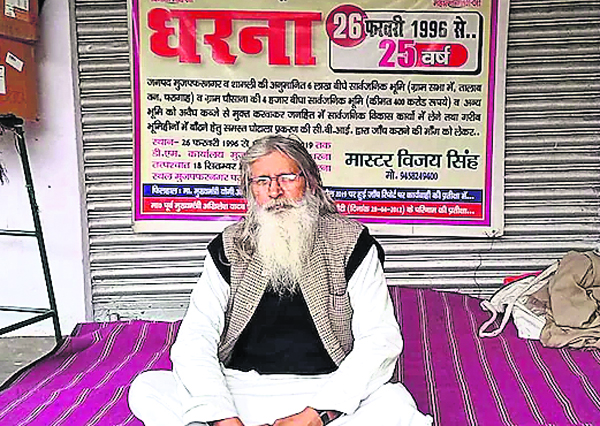 ପଶ୍ଚିମ ଉତ୍ତରପ୍ରଦେଶରେ ହଜାର ହଜାର ଏକର ଜମିକୁ ମାଫିଆମାନେ କବ୍ଜା କରିଛନ୍ତି। ସେମାନଙ୍କ ବିରୋଧରେ କାର୍ଯ୍ୟାନୁଷ୍ଠାନ ଦାବିରେ ବିଜୟ ସିଂ ୧୯୯୬ରୁ ଧାରଣାରେ ବସିଛନ୍ତି। ସରକାର ଏ ପର୍ଯ୍ୟନ୍ତ ତାଙ୍କ କଥା ଶୁଣି ନ ଥିବାରୁ ସେ ବର୍ତ୍ତମାନର ମୁଖ୍ୟମନ୍ତ୍ରୀ ଯୋଗୀ ଏବଂ ପୂର୍ବତନ ମୁଖ୍ୟମନ୍ତ୍ରୀ ଅଖିଳେଶଙ୍କୁ ନିର୍ବାଚନରେ ଚ୍ୟାଲେଞ୍ଜ ଦେବାକୁ ନିଷ୍ପତ୍ତି ନେଇଛନ୍ତି। ବୁଧବାର ସେ ଗୋରଖପୁର ଅର୍ବାନ ଆସନରୁ ପ୍ରାର୍ଥତ୍ପତ୍ର ଦାଖଲ କରିବେ।