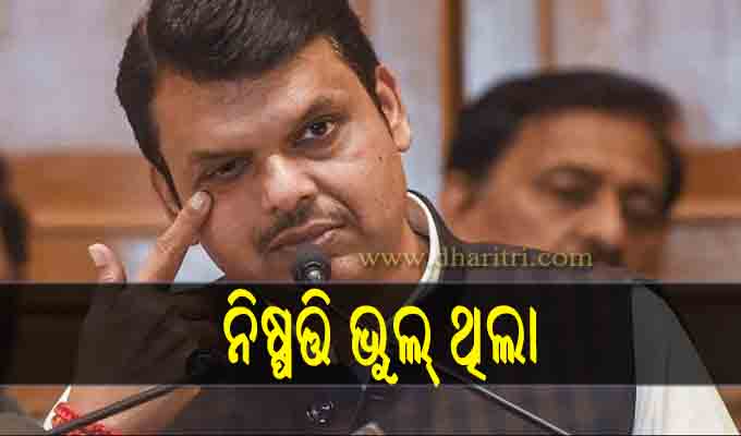 ମୁମ୍ବାଇ,୬।୬: ମହାରାଷ୍ଟ୍ରର ପୂର୍ବତନ ମୁଖ୍ୟମନ୍ତ୍ରୀ ଦେବେନ୍ଦ୍ର ଫଡନାଭିସ ନିଜର ଏକ ଭୁଲ୍କୁ ସ୍ବୀକାର କରିଛନ୍ତି। ୨୦୧୯ରେ ଜାତୀୟତାବାଦୀ କଂଗ୍ରେସ ପାର୍ଟି (ଏନସିପି) ନେତା ଅଜିତ ପାୱାରଙ୍କ ସହ ମିଶି ସରକାର ଗଠନ ପାଇଁ ନିଷ୍ପତ୍ତି ନେବା ଭୁଲ୍ ଥିଲା ବୋଲି ଫଡନାଭିସ୍ କହିଛନ୍ତି। ଭାରତୀୟ ଜନତା ପାର୍ଟି ନେତା ଫଡନାଭିସ ଏକ ସାକ୍ଷାତକାରରେ ସେ କହିଛନ୍ତି, ଅବଶ୍ୟ ଏଥିପାଇଁ ମୋର କୌଣସି ଅନୁତାପ ନାହିଁ, କିନ୍ତୁ ଆମେ ଏପରି ସରକାର ଗଠନ କରିବା ଉଚିତ୍ ନ ଥିଲା। ଏହା ଏକ ଭୁଲ ନିଷ୍ପତ୍ତି ଥିଲା।