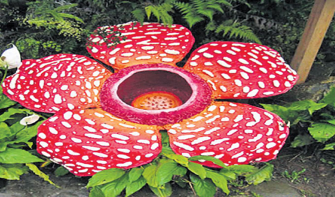 ରାଫ୍ଲେସିଆ: ଏହା ପୃଥିବୀର ସବୁଠୁ ବଡ଼ ଫୁଲ। ଯାହାର ଚେର କିମ୍ବା ଡାଳପତ୍ର ନ ଥିବା ବେଳେ ଏହା ଏକ ପରଜୀବୀ। ୫ଟି ପାଖୁଡ଼ା ବିଶିଷ୍ଟ ଏହି ଫୁଲର ବ୍ୟାସ ପ୍ରାୟ ଏକ ମିଟର ହୋଇଥିବା ବେଳେ ଏହାର ଓଜନ ୧୧ କେ.ଜି. ପର୍ଯ୍ୟନ୍ତ ହୋଇଥାଏ। ଏହି ଫୁଲ ରଙ୍ଗ ଲାଲ୍ ରଙ୍ଗର ଏବଂ ଏହା ଉପରେ ଧଳା ରଙ୍ଗର ଛିଟା ରହିଛି।