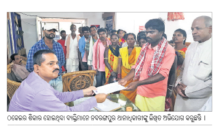 ନବରଙ୍ଗପୁର,୩୦ା୫(ବି.ପ୍ର.): ଚାକିରି ଓ ବ୍ୟାଙ୍କ ଲୋନ କରାଇଦେବା ନାଁରେ ଜଣେ ଯୁବକ ଶତାଧିକ ଲୋକଙ୍କଠାରୁ ଟଙ୍କା ଠକି ନେଇଥିବା ନବରଙ୍ଗପୁର ଥାନାରେ ଅଭିଯୋଗ ହୋଇଛି। ରବିବାର ନବରଙ୍ଗପୁର ଜିଲାର ଆସଙ୍ଗା, ନନ୍ଦାହାଣ୍ଡି, କୋରାପୁଟ ଜିଲା ବୋରିଗୁମ୍ମା ବ୍ଲକର ଛତ୍ରଲା ଗାଁର ୨୦ରୁ ଊର୍ଦ୍ଧ୍ୱ ମହିଳା ପୁରୁଷ ନବରଙ୍ଗପୁର ଥାନାଧିକାରୀ ତାରିକ୍ ଅହମ୍ମଦଙ୍କୁ ଭେଟି ଅଭିଯୋଗପତ୍ର ଦେଇଛନ୍ତି।
