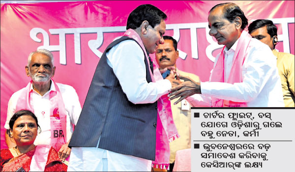 ଏହି ନେତାମାନଙ୍କୁ ଦଳକୁ ସ୍ବାଗତକରି କେସିଆର୍ କହିଛନ୍ତି, ଓଡ଼ିଶାରେ ମହାନଦୀର ମାତ୍ର ୨୫-୩୦ ପ୍ରତିଶତ ଜଳ ଉପଯୋଗ ହେଉଥିବା ବେଳେ ପ୍ରାୟ ୫୫ ପ୍ରତିଶତ ଜଳ ସମୁଦ୍ରକୁ ଯାଉଛି। ଆବଶ୍ୟକତାରୁ ଅଧିକ ଜଳ ନଷ୍ଟ ହେଉଛି। ଏହି ଜଳକୁ ଲୋକଙ୍କ ପିଇବା, ଜଳସେଚନ ଓ ବିଦ୍ୟୁତ୍ ଉତ୍ପାଦନ କାର୍ଯ୍ୟରେ ଉପଯୋଗ କରାଯାଇପାରନ୍ତା। ବ୍ରାହ୍ମଣୀ, ବୈତରଣୀ ସହ ଆଉ ଛୋଟ ଛୋଟ ନଦୀ ମଧ୍ୟ ଅଛି। ନଦୀଜଳ ସମୁଦ୍ରରେ ନଷ୍ଟ ହେଉଛି, କିନ୍ତୁ କାହିଁକି ଲୋକଙ୍କ କାମରେ ଲାଗିପାରୁନାହିଁ। ଓଡ଼ିଶାର ଢେଙ୍କାନାଳ ଓ ତାଳଚେରରେ ଉଚ୍ଚମାନର କୋଇଲା ମିଳୁଛି। ଓଡ଼ିଶାର କୋଇଲା ଖଣି କାହା କାମରେ ଲାଗୁଛି। ଓଡ଼ିଶାରେ ଦୀର୍ଘଦିନ ଧରି ଚାଷୀ ଆନ୍ଦୋଳନ ଜାରି ରହିଛି। ନିର୍ବାଚନ ଜିତିବା ପାଇଁ ନୂଆ ନୂଆ ପ୍ରତିଶ୍ରୁତି ଦେଇ ଭୋଟ ପାଇଲା ପରେ ସେସବୁ ଭୁଲିଯାଉଛନ୍ତି ସେ କହିଛନ୍ତି। ତେବେ ଆସନ୍ତା ଏପ୍ରିଲରେ କେସିଆର୍ଙ୍କ ଉପସ୍ଥିତିରେ ଏକ ବିଶାଳ ସମାବେଶ ଭୁବନେଶ୍ୱରରେ କରିବା ଲାଗି ଲକ୍ଷ୍ୟ ରହିଥିବା ଜଣାପଡ଼ିଛି।
