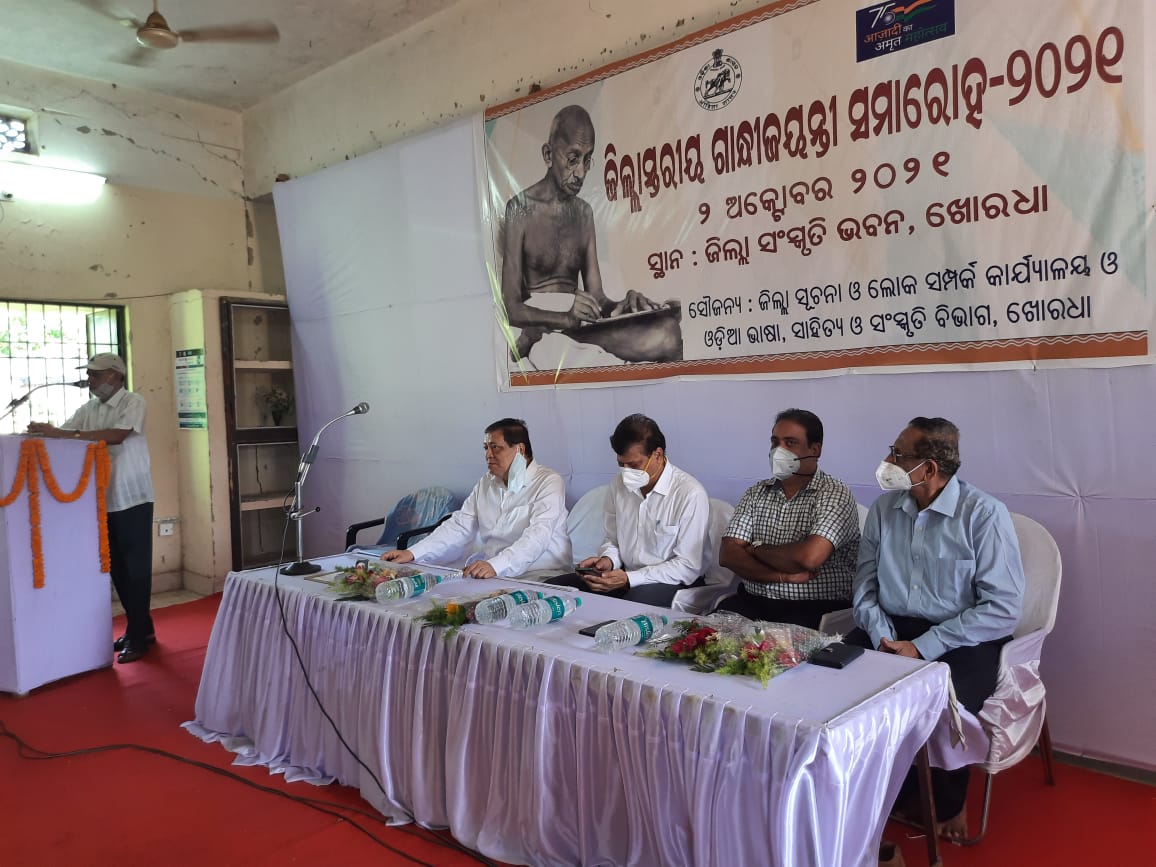 ଖୋର୍ଦ୍ଧା ଅଫିସ,୨।୧୦: ଜିଲା ସୂଚନା ଓ ଲୋକସମ୍ପର୍କ ବିଭାଗ ଏବଂ ଓଡ଼ିଆ ଭାଷା ସାହିତ୍ୟ ସଂସ୍କୃତି, ଖୋର୍ଦ୍ଧା ଆନୁକୂଲ୍ୟରେ ଜିଲାସ୍ତରୀୟ ମହାତ୍ମା ଗାନ୍ଧୀ ଓ ଲାଲବାହାଦୁର ଶାସ୍ତ୍ରୀଙ୍କ ଜୟନ୍ତୀ ସଂସ୍କୃତି ଭବନ ପରିସରରେ ଶନିବାର ଅନୁଷ୍ଠିତ ହୋଇଯାଇଛି। ଜିଲାପାଳ ସନତ ମହାନ୍ତି ଉକ୍ତ ବୈଠକରେ ସଭାପତିତ୍ୱ କରିଥିଲେ।