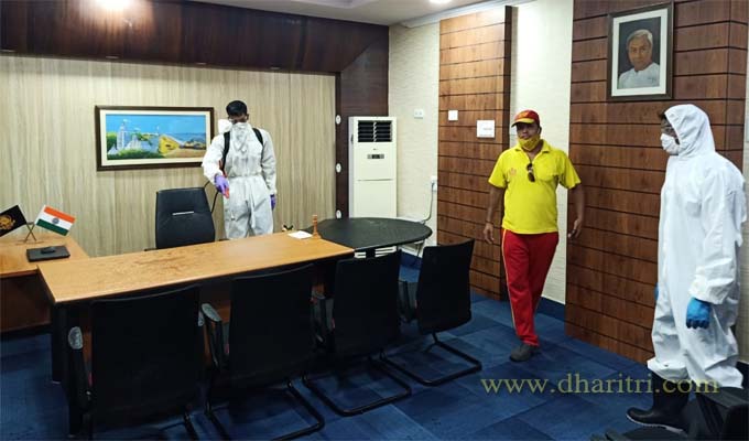 ଛତ୍ରପୁର,୨୫ା୬(ଡି.ଏନ୍.ଏ.): ଗଞ୍ଜାମ ଜିଲାରେ କରୋନା ଆକ୍ରାନ୍ତଙ୍କ ସଂଖ୍ୟା ଦ୍ରୁତଗତିରେ ବୃଦ୍ଧି ପାଇବାରେ ଲାଗିଛି। ବରିଷ୍ଠ ଅଫିସରମାନେ ମଧ୍ୟ ସଂକ୍ରମିତ ହେଲେଣି। ୧୦ଦିନ ପାଇଁ ସମସ୍ତ ସରକାରୀ କାର୍ଯ୍ୟାଳୟକୁ ସର୍ବସାଧାରଣଙ୍କୁ ମନା ରହିଛି। ସମସ୍ତ ସରକାରୀ ଅଫିସକୁ ସାନିଟାଇଜ୍ କରାଯିବାକୁ ଥିବା ବେଳେ ଗୁରୁବାର ଛତ୍ରପୁରସ୍ଥିତ ଜିଲାପାଳଙ୍କ କାର୍ଯ୍ୟାଳୟ ଓ ପ୍ରକୋଷ୍ଠକୁ ସ୍ଥାନୀୟ ଅଗ୍ନିଶମ କାର୍ଯ୍ୟାଳୟ ପକ୍ଷରୁ ସାନିଟାଇଜ୍ କରାଯାଇଛି।
