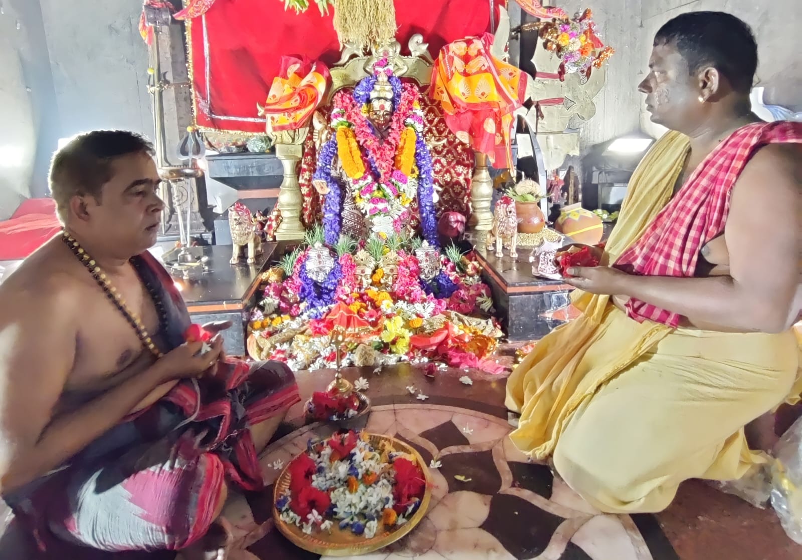 ପୁରୁଷୋତ୍ତମପୁର,୨୩।୩(ଡି.ଏନ.ଏ): ଗଞ୍ଜାମ ଜିଲାର ପ୍ରସିଦ୍ଧ ଇଷ୍ଟଦେବୀ ମା’ ତାରାତାରିଣୀ ପୀଠରେ ବାସନ୍ତୀକ ନବରାତ୍ର ପର୍ବ ଲାଗି ବୁଧବାର ରାତ୍ରରୁ ଚଳଚଞ୍ଚଳ ହୋଇ ଉଠିଛି। ପଣ୍ଡିତଙ୍କ ବେଦ ଧ୍ବନିରେ ରତ୍ନଗିରି ପାହାଡ ପ୍ରକମ୍ପିତ ହେବାରେ ଲାଗିଛି। ଏହି ପର୍ବ ଚୈତ୍ର ପ୍ରତିପଦା ଠାରୁ ଶ୍ରୀରାମ ନବମୀ ପର୍ଯ୍ୟନ୍ତ ଚାଲିବ। ଏହି ନବଦିନ ବ୍ୟାପି ସେବାୟତଙ୍କ ଦ୍ୱାରା ଦୈନନ୍ଦିନ ନିତିକାନ୍ତି ସହ ମା’ଙ୍କ ମୁଖ୍ୟ ପୁରୋହିତ ପଣ୍ଡିତ ସୀମାଞ୍ଚଳ ଦାଶ ଶର୍ମାଙ୍କ ଦ୍ୱାରା ପରମ୍ପରା ପ୍ରକାରେ ସ୍ବତନ୍ତ୍ର ଷୋଡଶ ଉପଚାର, ଚଣ୍ଡି ପାଠ, ମଣ୍ଡଳ ଦେବତା ପୂଜା ଓ ହୋମଯଜ୍ଞ ଆଦି କାର୍ଯ୍ୟ ପରମ୍ପରା ପ୍ରକାରେ ପର୍ଯ୍ୟାୟ କ୍ରମେ ହେବାରେ ଲାଗିଛି। ମା’ ତାରାତାରିଣୀ ଦୁଇ ଭଉଣୀଙ୍କ ପ୍ରତିମାକୁ ରତ୍ନ ସିଂହାସନରୁ ଓହ୍ଲାଇ ୨୧ ପାହାଛ ପହଣ୍ଡି ବିଜେ କରାଇ ମହାବେଦୀ ଯଜ୍ଞସ୍ଥଳକୁ ଅଣାଯାଇ ପୂଜାର୍ଚ୍ଚନା କରାଯାଏ। ପୁଣି ପହଣ୍ଡି ବିଜେ କରାଇ ରତ୍ନ ସିଂହାସନକୁ ଫେରାଇ ନିଆଯାଏ। ଅଶୋକା ଅଷ୍ଟମୀରେ ସ୍ବତନ୍ତ୍ର ପୂଜା ସହ ମା’ଙ୍କ ମହାଦୀପ ଉଠିବ। ମୁଖ୍ୟ ପୁରୋହିତଙ୍କ ସହ ବହୁ ପଣ୍ଡିତ ଉପସ୍ଥିତ ରହି ପୂଜାର୍ଚ୍ଚନା କରୁଥିବାବେଳେ କର୍ତ୍ତା ଭାବେ ସେବାୟତ ସଂଘ ସଭାପତି ତପନ କୁମାର ରଣା ରହିଛନ୍ତି। ଏହା ସହ ସେବାୟତ ବାପୁଜୀ ରଣା, ଧୃବ ରଣାଙ୍କ ସମେତ ସମସ୍ତ ସେବାୟତ ଓ ତାଙ୍କ ପରିବାର ସହଯୋଗ କରିବାରେ ଲାଗିଛନ୍ତି। ଏହାକୁ ମନ୍ଦିର ନିର୍ବାହୀ ଅଧିକାରୀ ଟିକେ ରେଡି, ଉନ୍ନୟନ ପରିଷଦ ସମ୍ପାଦକ ପ୍ରମୋଦ କୁମାର ପଣ୍ଡା ପରିଚାଳନା କରୁଥିବାବେଳେ ଦେବୋତ୍ତର ବିଭାଗୀୟ ଇନ୍ସପେକ୍ଟର ପୁଷ୍ପିତା ବେହେରା ଆସି ତଦାରଖ କରିଛନ୍ତି।