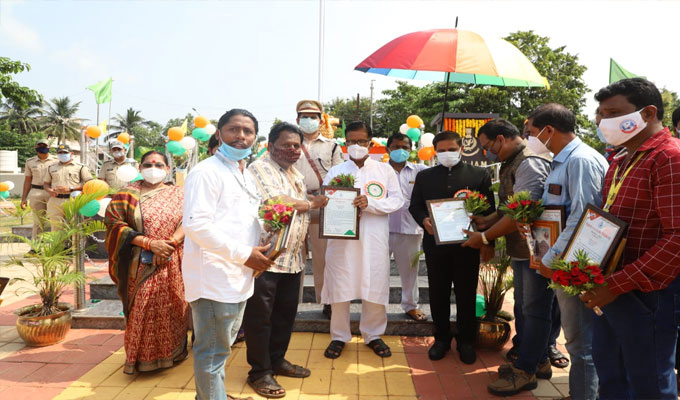 ଛତ୍ରପୁର,୧୫।୮(ଡି.ଏନ୍.ଏ.): ଗଞ୍ଜାମରେ ଜିଲାସ୍ତରୀୟ ୭୫ତମ ସ୍ବାଧୀନତା ଦିବସ ପାଳିତ ହୋଇଯାଇଛି। ଏହି ଅବସରରେ ଇସ୍ପାତ, ଖଣି ଏବଂ ପୂର୍ତ୍ତ ମନ୍ତ୍ରୀ ପ୍ରଫୁଲ୍ଲ କୁମାର ମଲ୍ଲିକ ମୁଖ୍ୟ ଅତିଥି ଭାବେ ଯୋଗଦେଇ ଜାତୀୟ ପତାକା ଉତ୍ତୋଳନ କରିଥିଲେ। ପରେ ଅନୁଷ୍ଠିତ ପରେଡ୍ରେ ସେ ଅଭିବାଦନ ଗ୍ରହଣ କରି ସ୍ବାଧୀନତା ସଂଗ୍ରାମରେ ଗଞ୍ଜାମର ଅବଦାନ ଅତୁଳନୀୟ ବୋଲି କହିଥିଲେ। ଏହି ଅବସରରେ କରୋନା ଯୋଦ୍ଧାଙ୍କୁ ସମ୍ବର୍ଦ୍ଧିତ କରିଥିଲେ। ଉକ୍ତ କାର୍ଯ୍ୟକ୍ରମରେ ଛତ୍ରପୁର ବିଧାୟକ ସୁବାସ ଚନ୍ଦ୍ର ବେହେରା, ଗଞ୍ଜାମ ଜିଲାପାଳ ବିଜୟ ଅମୃତା କୁଲାଙ୍ଗେ, ଗଞ୍ଜାମ ଏସ୍ପି ବ୍ରିଜେଶ କୁମାର ରଏ, ଜିଲାପରିଷଦ ଅଧ୍ୟକ୍ଷା ସୋନମ୍ ପଲେଇ, ଉପାଧ୍ୟକ୍ଷା ସ୍ନେହଲତା ପଣ୍ଡା ପ୍ରମୁଖ ଉପସ୍ଥିତ ଥିଲେ।