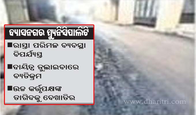 ଗୃହ ଏବଂ ନଗର ଉନ୍ନୟନ ବିଭାଗ ପକ୍ଷରୁ ୧୮ା୫ା୨୦୨୨ରେ ବର୍ଷା ପୂର୍ବରୁ ସହରର ସମସ୍ତ ଡ୍ରେନେଜ ସିଷ୍ଟମର ସଫେଇ, ପଙ୍କ ଉଦ୍ଧାର ଆଦି ସମ୍ପନ୍ନ କରିବାକୁ ନିର୍ଦ୍ଦେଶ ହୋଇଥିଲା। କିନ୍ତୁ ବ୍ୟାସନଗର ସହରରେ ମାସିକ ଖର୍ଚ୍ଚ ହେଉଥିବା ଅର୍ଥକୁ ହରିଲୁଟ କରିବା ଲକ୍ଷ୍ୟ ରଖି ପ୍ରାୟ ଡ୍ରେନରୁ ପଙ୍କ, ଆବର୍ଜନା ଉଠାଯାଇ ନ ଥିଲା। ଫଳରେ ସହରର ଏକାଧିକ ରାସ୍ତାରେ ସାମାନ୍ୟ ବର୍ଷା ହେଲେ ପଙ୍କ ଓ ଆବର୍ଜନା ରାସ୍ତାରେ ବୋହୁଥିବା ଦେଖିବାକୁ ମିଳିଛି। ସହରର ପରିମଳ ସ୍ବାୟତ୍ତ ଶାସନ ସଂସ୍ଥାର ମୌଳିକ ଦାୟିତ୍ୱ ହୋଇଥିବାବେଳେ ବ୍ୟାସନଗର ମ୍ୟୁନିିସିପାଲଟି ପାଇଁ ଏହା ପ୍ରାଥମିକତା ରଖିନାହିଁ । ୧୦ବର୍ଷ ପୂର୍ବେ ଏହି ସହରର ଜନସଂଖ୍ୟା ପ୍ରାୟ ୫୦ ହଜାର ଥିବାବେଳେ ଏବେ ପ୍ରାୟ ଦେଢଲକ୍ଷ ପାଖାପାଖି ରହିଛି । ସହରର ପରିସୀମା ମଧ୍ୟ ବହୁ ଗୁଣରେ ବୃଦ୍ଧି ପାଇଛି । ଅପରପକ୍ଷେ ସେତେବେଳେ ମ୍ୟୁନିସିପାଲିଟି ଅଧୀନରେ ନିୟମିତ ଓ ଅସ୍ଥାୟୀ କର୍ମଚାରୀ ସଫେଇ ଦାୟିତ୍ୱରେ ରହୁଥିଲାବେଳେ ମୌଳିକ ଦାୟିତ୍ୱ ପରିମଳ କାର୍ଯ୍ୟକୁ ଘରୋଇକରଣ କରିବା ଦିଗରେ ମ୍ୟୁନିସିପାଲିଟି କର୍ତ୍ତୃପକ୍ଷ ଅଧିକ ଆଗ୍ରହ ଦେଖାଇଛନ୍ତି । ଏହି ଠିକାସଂସ୍ଥା ଜରିଆରେ ମାସକୁ ପ୍ରାୟ ୨୨ ରୁ ୨୫ ଲକ୍ଷ ଟଙ୍କା ସଫେଇ କାର୍ଯ୍ୟରେ ଖର୍ଚ୍ଚ କରାଯାଉଛି। ହେଲେ ବାସ୍ତବରେ କମ ଖର୍ଚ୍ଚ ହେଉଥିବା ରାସ୍ତା ସଫେଇକୁ ଅଗ୍ରାଧିକାର ଦେଇ ବାହାବା ମାରୁଥିବାବେଳେ ଅଧିକ ଖର୍ଚ୍ଚ ଭୟରେ ଡ୍ରେନ ସଫାକୁ ପ୍ରାଧାନ୍ୟ ଦିଆଯାଉନାହିଁ। ଏହିକ୍ରମରେ ମାସକୁ ପାଖାପାଖି ୧୦ ଲକ୍ଷ ଟଙ୍କା ଖର୍ଚ୍ଚ କରି ବାକି ଅର୍ଥକୁ ମ୍ୟୁନିସିପାଲିଟି କର୍ତ୍ତୃପକ୍ଷ ଏବଂ ଠିକାସଂସ୍ଥା ମିଳିମିଶି ହରିଲୁଟ କରୁଥିବା ଚର୍ଚ୍ଚା ଜୋର ଧରିଛି। ଏନେଇ ଯେତେ ଅଭିଯୋଗ କରାଗଲା ମଧ୍ୟ ବାଡ ଫସଲ ଖାଇବା ସଦୃଶ କର୍ତ୍ତୃପକ୍ଷ କାହା କଥା ଶୁଣୁ ନାହାନ୍ତି। ଓଲଟା ସଂପୃକ୍ତ ଠିକାସଂସ୍ଥା କର୍ତ୍ତୃପକ୍ଷଙ୍କୁ କିଛି ହେବନାହିଁ ମାଡିଚାଲ ବୋଲି ଉସୁକାଉଥିବା ଶୁଣିବାକୁ ମିଳୁଛି। ଏହି କାରଣରୁ ଗୁରୁବାର ବର୍ଷାରେ ୩ ଦିନ ତଳେ ଷ୍ଟେଟବ୍ୟାଙ୍କ ସମ୍ମୁଖ ନଟପଡା ଗଳିରେ ଉଠାଯାଇଥିବା ମଇଳା ରାସ୍ତାରେ ଗଦା ହୋଇ ଥିବା ଦେଖିବାକୁ ମିଳିଛି।